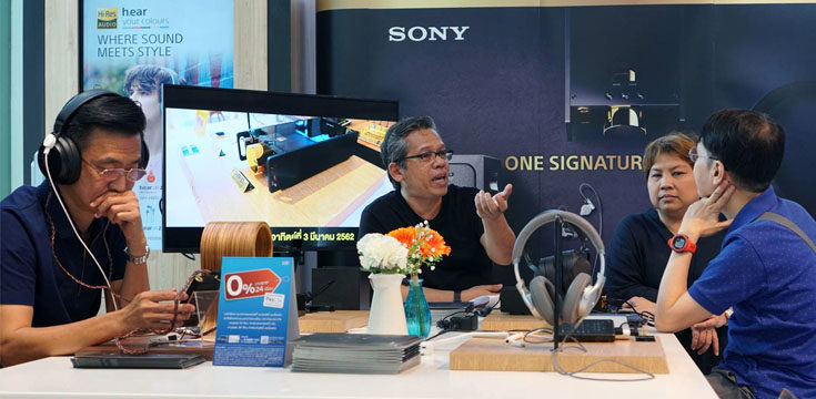 วันที่ 2 มีนาคม 2562 – กรุงเทพมหานคร / โซนี่ ไทยฯ จัดกิจกรรมสนุกๆ ให้กับแฟนๆ เครื่องเสียงของ Sony ได้มีโอกาสแวะเข้าไปทดลองฟังผลิตภัณฑ์ในกลุ่ม Signature Series กันภายใต้บรรยากาศที่สบายๆ เป็นกันเอง ที่มุม Hi-Res ของร้าน Sony Store สาขาสยามพารากอน