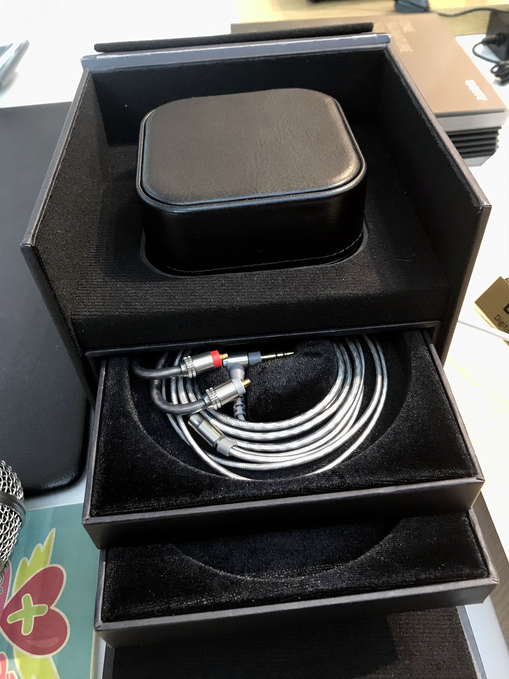 พื้นที่จัดโชว์ผลิตภัณฑ์เครื่องเสียงของ Sony ถูกจัดแยกออกไปทางมุมซ้ายด้านในของร้าน ผลิตภัณฑ์ถูกจัดวางไว้บนโต๊ะเปิดโอกาสให้ผู้ที่สนใจสามารถหยิบจับเพื่อทดลองฟังเสียงได้ตลอดเวลา โดยเฉพาะผลิตภัณฑ์ประเภทเครื่องเสียงพกพา อย่างเช่นเครื่องเล่นไฟล์เพลง, หูฟัง และแอมป์ขับหูฟัง รวมถึงแอคเซสซอรี่ต่างๆ อย่างเช่น สายหูฟัง, กระเป๋าใส่เครื่อง ฯลฯ ซึ่งมีให้ลองหลายระดับราคา แต่วันงานทางร้านเขาจัดรุ่นใหญ่ๆ โดยเฉพาะ Signature Series เอาไว้ให้ทดสอบครบทุกประเภทและทุกรุ่น