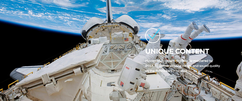 Unique Content : ภาพยนตร์และคอนเท็นต์ต่างๆ จะถูกรีมาสเตอร์ใหม่ด้วยระบบดิจิตัลโดยทีมงานของ IMAX เพื่อรักษาภาพและเสียงให้ออกมาเหมือนต้นฉบับดั้งเดิมตามที่ผู้สร้างคอนเท็นต์นั้นๆ ตั้งใจทำขึ้นมา