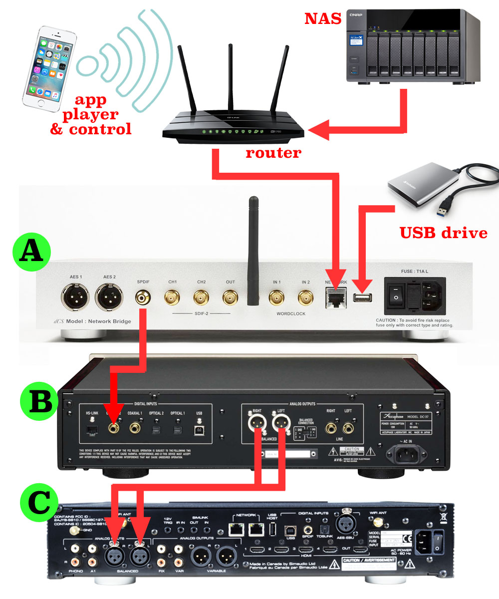 สำหรับคนที่ใช้ Accuphase : DC-37 อยู่ในซิสเต็ม การเพิ่มเติมตัว Network Bridge เข้าไปในซิสเต็มไม่ว่าจะเป็นตัวใดตัวหนึ่งที่แนะนำไว้ข้างต้น จะทำให้คุณสามารถใช้ DC-37 รองรับการเล่นไฟล์เพลงผ่านเน็ทเวิร์คได้โดยไม่ต้องซื้อ Network Player มาใช้อีก เพราะจริงๆ แล้ว Network Bridge + DC-37 ก็ทำหน้าที่เหมือนกับ “Network Audio Player” ได้อย่างสมบูรณ์แบบแล้ว /