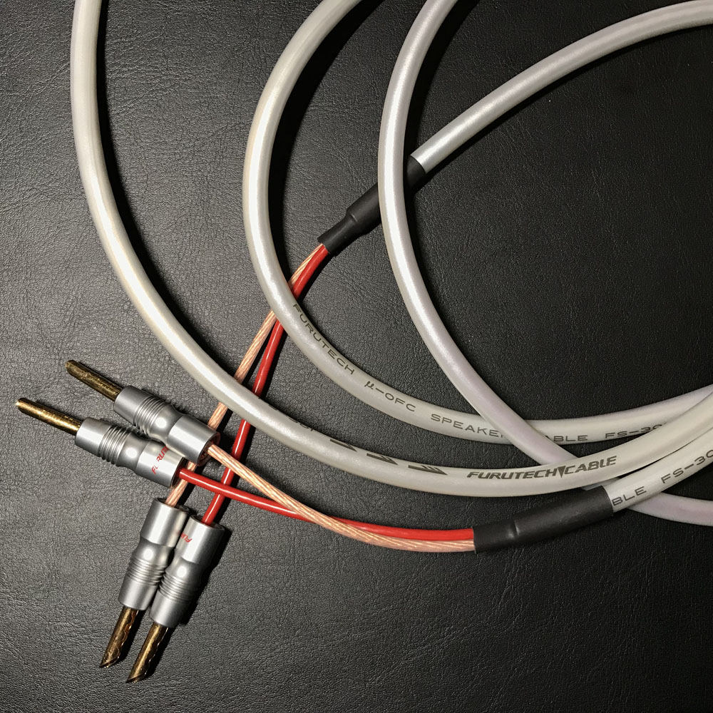 สายลำโพงในภาพที่ผมใช้เป็นของ Furutech รุ่น FS-301 ซึ่งให้คุณภาพเสียงออกมาน่าพอใจมาก ข้อสำคัญคือ ควรจะใช้สายลำโพงที่ “เหมือนกัน” ทั้งช่วงที่ใช้ขับมิด/วูฟเฟอร์ และช่วงที่ใช้ขับทวีตเตอร์ คือเป็นยี่ห้อเดียวกัน + รุ่นเดียวกัน และความยาวเท่ากันด้วยเพื่อไม่ให้มีปัญหาเรื่องเฟสสัญญาณเกิดขึ้น