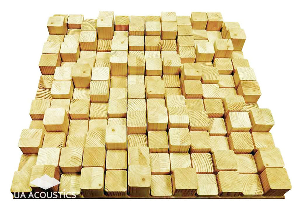 ผลิตภัณฑ์ที่ได้รับความนิยมมากที่สุดสำหรับนักเล่นเครื่องเสียงที่เอามาใช้ในการปรับจูนสียงภายในห้องฟังก็คือ QRD 734 Diffusor มีลักษณะเป็นแผงไม้ที่ทำเป็นร่องตื้นลึกต่างกันเป็นแพลทเทิ้นอย่างมีระบบ ซึ่งความตื้นลึกของร่องไม้บนแผง QRD 734 Diffusor จะทำหน้าที่กระจายคลื่นเสียงที่แผ่มาตกกระทบลงบนตัวมันให้ฟุ้งกระจายออกไปในห้อง ด้วยทิศทางที่ไม่สม่ำเสมอ เมื่อเทียบกับผนังห้องเรียบๆ จะพบว่า ผนังห้องเรียบๆ จะทำการสะท้อนพลังงานคลื่นเสียงที่แผ่มาจากลำโพงให้สะท้อนกลับมายังหูของผู้ฟังทั้งเร็วและดังกว่า ซึ่งเทียบกันแล้ว แผง QRD Diffusor ของ RPG จะทำให้เสียงของความถี่ในย่านกลางขึ้นไปถึงแหลมไม่ถูกดูดกลืนออกไปจากระบบมากเกินไปเหมือนการใช้แผ่นฟองน้ำเก็บเสียง แต่ทั้งนี้ทั้งนั้น การใช้งานแผง QRD Diffusor ให้ได้ผลดีต้องทำการเซ็ตอัพตำแหน่งที่ลงตัวในแต่ละห้องด้วย ถ้าไม่ลงตัวอาจมีผลให้เสียงกลางแหลมมีลักษณะฟุ้งและมากเกินไป