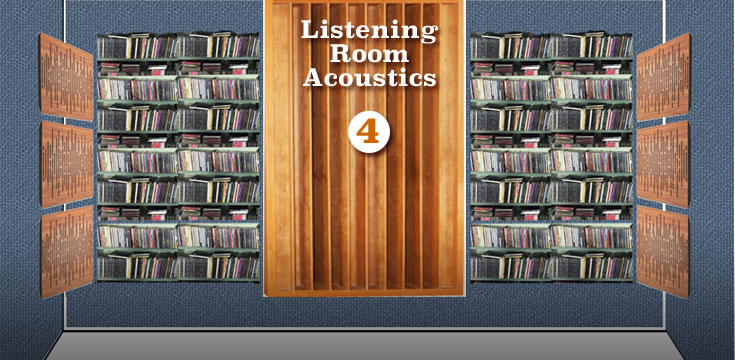 หลังจากทำความเข้าใจถึงจุดประสงค์ในการปรับสภาพอะคูสติก และได้ทำความรู้จักกับอุปกรณ์ที่นิยมใช้กันไปแล้ว ในบทที่ ๔ นี้เราจะเริ่มทำการปรับสภาพอะคูสติกของห้องฟังกัน โดยเริ่มจากผนังด้านหลังของห้องฟังกันก่อน ซึ่งความหมายของคำว่า ผนังด้านหลังก็คือผนังด้านที่อยู่หลังฝั่งที่คุณวางลำโพงทั้งสองข้างนั่นเอง นั่นก็หมายความว่า หลักการที่กำลังจะกล่าวถึงนี้สามารถนำไปใช้กับการเซ็ตอัพภายในห้องรับแขก ซึ่งเป็นพื้นที่เปิดโล่งที่ไม่ได้กั้นเป็นห้องปิดทึบก็ได้ ขอแค่ให้ยังคงเป็นพื้นที่ที่อยู่ในบ้านเท่านั้น