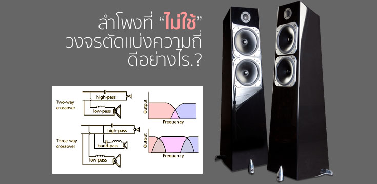 นั่นก็หมายความว่า การทำงานเพื่อถ่ายทอดความถี่เสียงของไดเวอร์แต่ละตัวจะ “ถูก” ควบคุมและจัดสรร “ปริมาณความถี่” ที่ต้องถ่ายทอดโดยวงจรครอสโอเว่อร์ฯ ดังนั้น ความหมายโดยนัยยะก็พูดได้ว่า ความถี่เสียงทั้งหมดที่เราได้ยินจากลำโพงคู่นั้นมีลักษณะเหมือนการเอา “ความถี่แต่ละช่วง” ที่เกิดจากไดเวอร์แต่ละตัวมา “เย็บแปะ” เข้าด้วยกัน กลายเป็นคลื่นเสียงฟูลเร้นจ์ที่มี “รอยเย็บ” เกิดขึ้นจำนวนเท่ากับ “จำนวนไดเวอร์ที่ใช้ทั้งหมด” ลบด้วยหนึ่ง