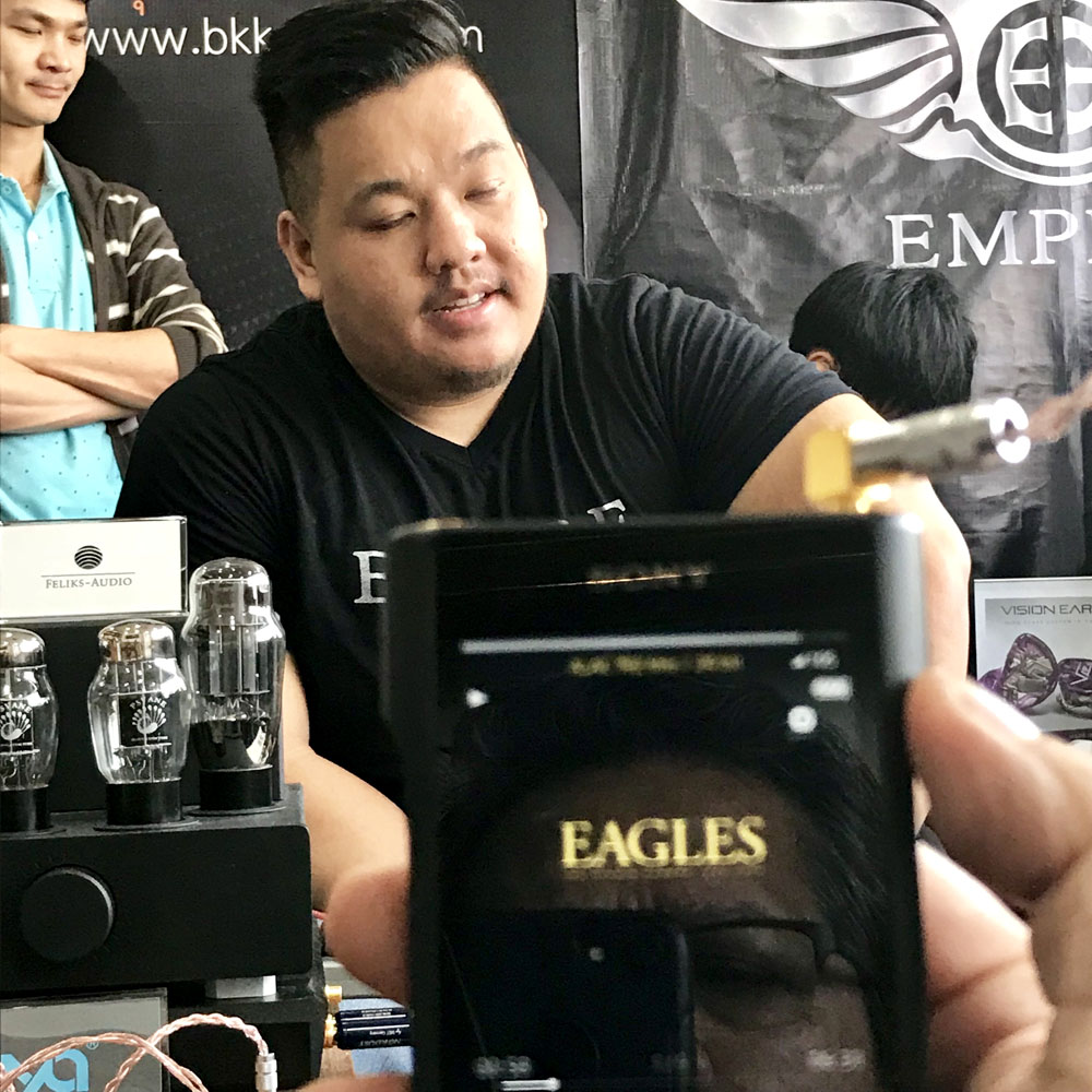 วันนั้นผมได้พบกับคุณ Dean Vang รองประธานของ EmpireEars และคุณ Jack Vang คนออกแบบ ซึ่งเราได้พูดคุยถึงผลิตภัณฑ์รุ่นใหม่ที่พวกเขาเอามาเปิดตัวในงานกันอยู่นาน คุณดีน แวงอธิบายให้ผมฟังว่า หูฟังรุ่นใหม่ล่าสุดที่พวกเขาหอบหิ้วมาโชว์ให้นักเล่นหูฟังในบ้านเราได้มีโอกาสสัมผัสมีอยู่ 2 ซีรี่ย์ คือ EP series จำกับ X series