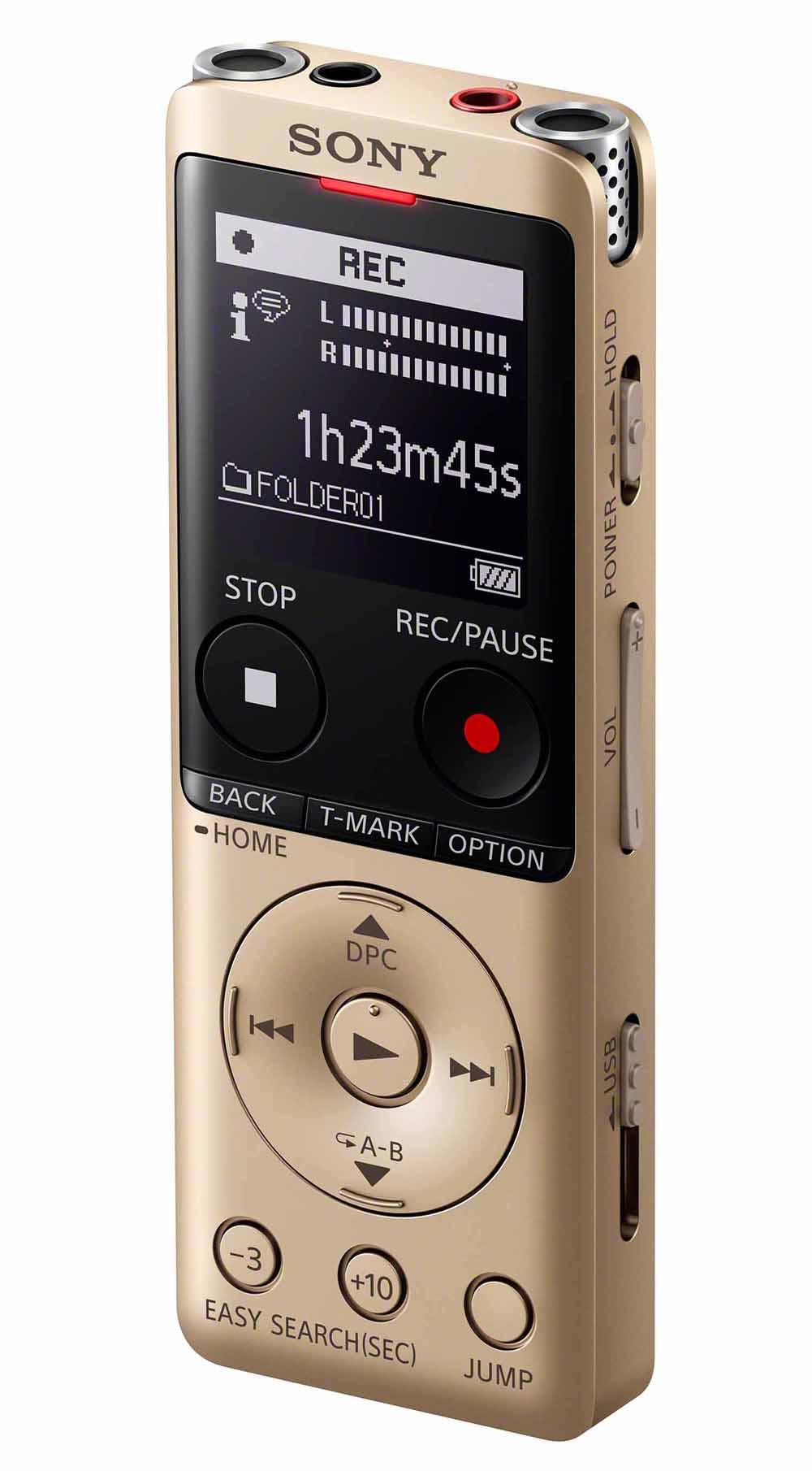 พร้อมกันนี้ โซนี่ยังได้จัดเตรียมเครื่องบันทึกเสียงดิจิตอล Hi-Res Audio แบบพกพารุ่นใหม่ล่าสุด ICD-UX570F นับเป็นเครื่องอัดเสียงอเนกประสงค์รุ่นใหม่ล่าสุด ที่ตอบโจทย์ตอบโจทย์ทั้งการบันทึก และเล่นทั้งเสียงดนตรีและเสียงร้องได้อย่างคมชัด อีกทั้งยังสามารถปรับแต่งเสียงบันทึกได้ด้วยโปรแกรม Sound Organize 2 ที่มากับเครื่องที่ช่วยในการปรับแต่งเสียงอัตโนมัติเพื่อให้ได้เสียงบันทึกที่ชัดเจนและมีความดังเหมาะสม รวมถึงมีฟังก์ชั่นการค้นหาข้อมูลเพื่อช่วยให้การบันทึกทำได้อย่างสะดวกรวดเร็วยิ่งขึ้น นอกจากนี้ ยังมาพร้อมหน้าจอ OLED และ UI ที่พัฒนาขึ้นใหม่ ทำให้มีความคมชัดและดูได้อย่างง่ายดาย ขณะเดียวกัน ยังมีระบบชาร์จไวเพียง นาที โดยสามารถใช้งานได้ 60 นาที และสามารถบันทึกวิทยุ FM และสัญญาณภายนอกผ่านรูปแบบ AUX 3.5 มม.ได้อีกด้วย มาพร้อมหน่วยความจำในตัวเครื่อง 4GB และยังสามารถเพิ่มความจุได้มากกว่า 64GB ด้วย Micro SD Card มีให้เลือก 3 สีคือ สีดำ, สีเงิน และสีทอง พร้อมวางจำหน่ายตั้งแต่กลางเดือนธันวาคม ศกนี้ ใน ราคา 3,990 บาท