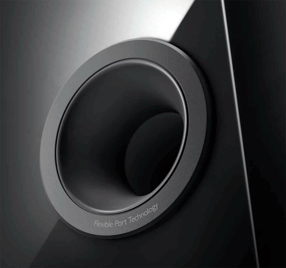 ตัววูฟเฟอร์ + ปริมาตรอากาศในตัวตู้ + ท่อระบายอากาศที่แผงด้านหลังของตัวตู้ ทั้งสามส่วนนี้จะร่วมมือกันทำให้ “คลื่นความถี่ต่ำ” ที่เกิดขึ้นจากการขยับตัวของไดอะแฟรมของวูฟเฟอร์มีลักษณะของการ “คลายตัว” ที่ราบเรียบ ซึ่งส่วนหนึ่งเป็นผลมาจากการออกแบบท่อระบายอากาศด้วยเทคนิคพิเศษที่พวกเขาใช้ชื่อเรียกว่า ‘Flexible Port Technology’ ด้วยการออกแบบวัสดุที่ทำให้ท่อมีลักษณะรูปทรงที่ค่อยๆ ผายออกจากด้านในที่รูระบายเล็กกว่าส่วนที่เป็นปากท่อด้านนอก ทำให้ไม่เกิดเสียงลมที่อัดกันอยู่ตรงปากท่อ ปลายเสียงทุ้มของลำโพงคู่นี้จึงมีลักษณะที่ลาดลงอย่างนุ่มนวล ไม่ฟุ้งกระจาย ไม่ห้วน และไม่มีเสียงรบกวน ซึ่งระบบท่อระบายอากาศนี้สามารถเพิ่มขยายความถี่ที่ต่ำกว่า 58Hz ที่วูฟเฟอร์สร้างออกมาให้ลาดลงไปได้จนถึง 30Hz ด้วยอัตราลาดลงของความดังเท่ากับ -6dB