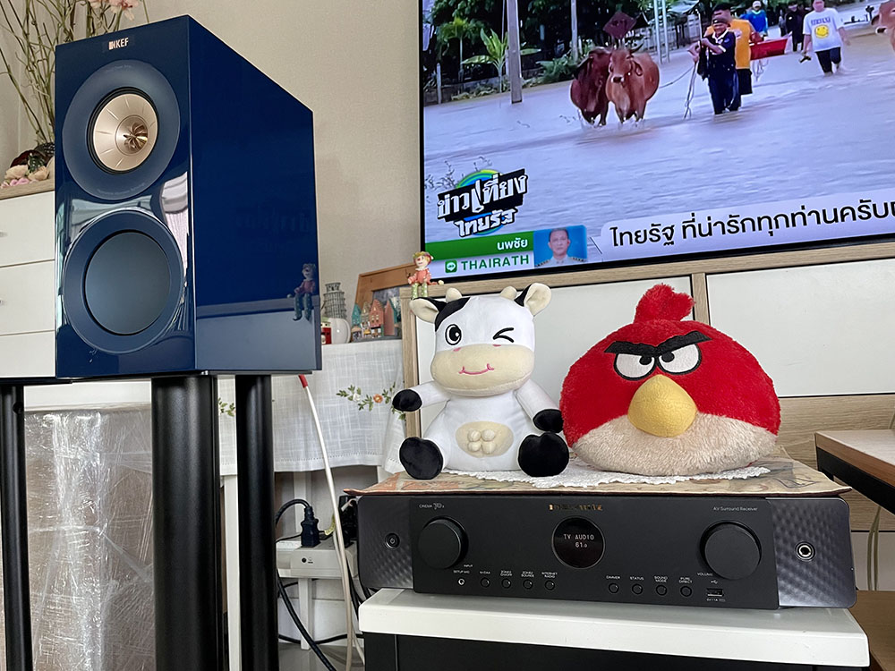 ช่วงเบิร์นฯ R3 Meta ผมทดลองเอาไปใช้ดูหนัง+ฟังเพลงในห้องรับแขก โดยจับคู่กับรีซีฟเวอร์ของ Marantz รุ่น Cinema 70 ซึ่งให้กำลังขับอยู่ที่ 50W ต่อข้างที่ 8 โอห์ม อาศัยสัญญาณดิจิตัลจากทีวีเข้าที่อินพุต Optical ของ Cinema 70 ปรับตั้งเอ๊าต์พุตของ Cinema 70 ให้ออกมาเป็นระบบเสียง Stereo 2.0 Ch (ไม่มีซับวูฟเฟอร์) และปรับใช้โหมด Bi-amp ดึงสัญญาณเสียงจากแชนเนลเซอร์ราวนด์หลังมาใช้ร่วมกับแชนเนล Front R กับ Front L เสียงออกมาดีกว่าเสียงของทีวีมากมาย ความถี่มีออกมาครบทั้งทุ้ม–กลาง–แหลมในปริมาณที่มากพอสำหรับพื้นที่ประมาณเกือบยี่สิบตารางเมตร เสียงอิ่มมีมวล