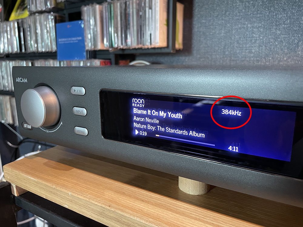 ผมเลยลองเปลี่ยนมาใช้ Roon เล่นไฟล์เดียวกันนี้ ซึ่งบนจอของ ST60 ก็โชว์แซมปลิ้งเรตเท่ากันคือ 384kHz แต่คราวนี้เสียงเพลงออกมาปกติ ไม่มีอาการสะดุดเลย ลื่นไหลและต่อเนื่องเป็นปกติทุกอย่าง แถมเสียงดีด้วย… เกิดอะไรขึ้น..?? หรืออาจจะเป็นเพราะคำว่า Roon Ready ..??