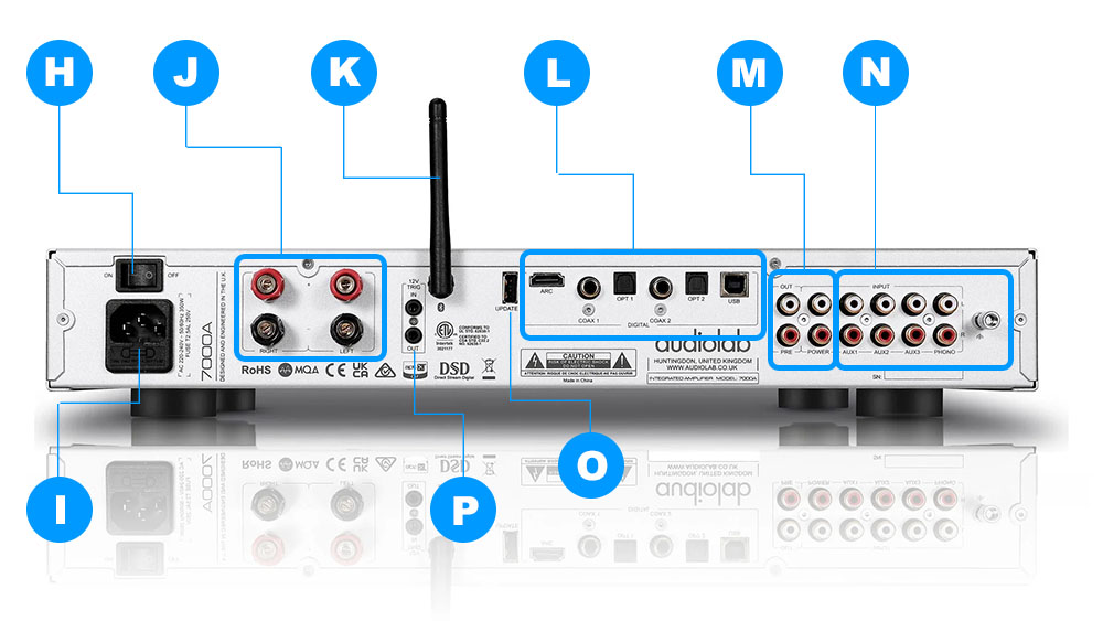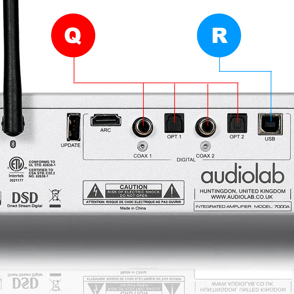 7000A ให้อินพุตสำหรับสัญญาณดิจิตัลมาทั้งหมด 5 ช่อง สำหรับรองรับสัญญาณดิจิตัลจากอุปกรณ์เครื่องเล่นคอนเท็นต์เพลงที่อยู่ในรูปของสัญญาณดิจิตัลอย่างเช่น เครื่องเล่นแผ่นซีดี, เอสเอซีดี, ดีวีดี รวมถึงสตรีมเมอร์ ยกเว้น HDMI ที่มีไว้ให้เชื่อมต่อกับทีวีโดยเฉพาะ ซึ่งช่องอินพุตที่ให้มาแบ่งเป็น 3 ประเภท คือ optical, coaxial (Q) และ USB (R)