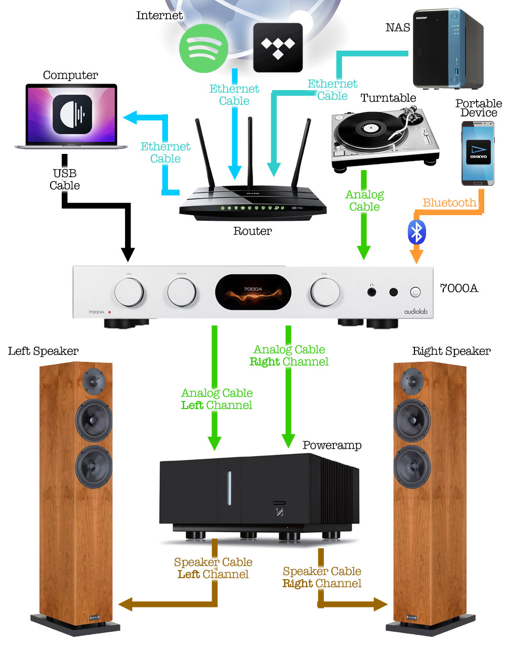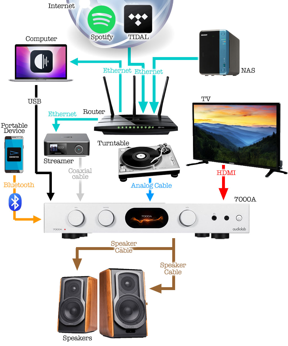 ทางบริษัท HiFi Tower ผู้นำเข้าผลิตภัณฑ์ของแบรนด์ Audiolab เข้ามาจำหน่ายในประเทศไทยได้จัดส่งสตรีมเมอร์ของ Audiolab รุ่น 7000N มาให้ทดลองใช้งานร่วมกับ 7000A ด้วย ซึ่งเข้าขากันดีมาก เป็นการเติมเต็มให้กับ 7000A ในแง่ของการสตรีมไฟล์เพลง ซึ่งในเมนูของตัว 7000A มีคำสั่งให้ลิ้งค์วอลลุ่มของ 7000A เข้ากับวอลลุ่มของ 7000N ได้ด้วย สะดวกดี