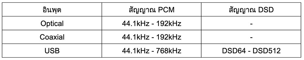อินพุต Optical กับ Coaxial ทั้ง 4 ช่อง ที่ให้มาสามารถรองรับสัญญาณดิจิตัลได้สูงสุดถึง 192kHz ส่วนช่องอินพุต USB ของ 7000A ช่องนี้ถือว่าพิเศษ คือเป็นอินพุต USB ที่มีคุณสมบัติเป็น ROON TESTED คือสามารถใช้งานร่วมกับทรานสปอร์ต (คอมพิวเตอร์ หรือสตรีมมิ่ง ทรานสปอร์ต) ที่ใช้โปรแกรม Roon ได้ “อย่างมีประสิทธิภาพสูงสุด” คือ สามารถรองรับสัญญาณดิจิตัลตระกูล PCM ได้สูงสุดถึงระดับ 768kHz และสามารถรองรับสัญญาณดิจิตัลตระกูล DSD ได้ตั้งแต่ DSD64 ขึ้นไปจนระดับสูงสุดที่ DSD512 ถ้า.. ฮาร์ดแวร์ของคอมพิวเตอร์หรือสตรีมมิ่ง ทรานสปอร์ตสามารถส่งออกมาได้ (มีลองเล่นอินพุต USB ช่วงท้าย)