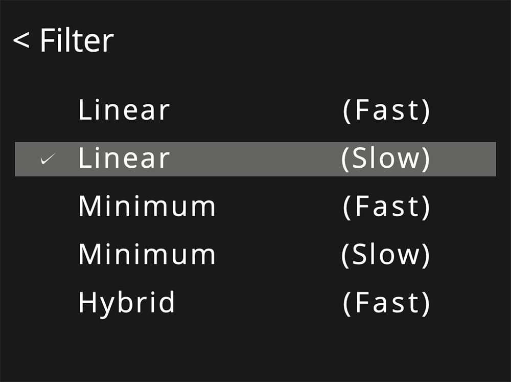 ฟิลเตอร์ที่ผู้ผลิตเลือกมาให้จากโรงงานคือตัว Linear Phase (Slow Roll-Off) ซึ่งให้เสียงแนวผ่อนปรน ฟังได้นานๆ ไม่ล้าหู ไม่ต้องเซ็ตอัพละเอียดเพราะโฟกัสของเสียงจะไม่ถึงกับเป๊ะมาก โดยรวมจะออกนัวๆ หน่อย แต่ถ้าคุณมีฝีมือในการเซ็ตอัพตำแหน่งลำโพง ชอบฟังเสียงที่มีโฟกัสชัดๆ แนะนำให้ลองใช้ฟิลเตอร์ตัว Minimum Phase (Slow Roll-Off) จะตรงกับความชอบมากกว่า โฟกัสจะคมกว่า อย่างไรก็ตาม ผลของฟิลเตอร์แต่ละตัวมันจะขึ้นอยู่กับอุปกรณ์แต่ละชิ้นในซิสเต็มด้วย แนะนำให้ทดลองเลือกฟังดู ในเบื้องต้น ชอบเสียงของฟิลเตอร์ตัวไหนมากที่สุดก็ใช้ตัวนั้นได้เลย ไม่มีอะไรเสียหาย