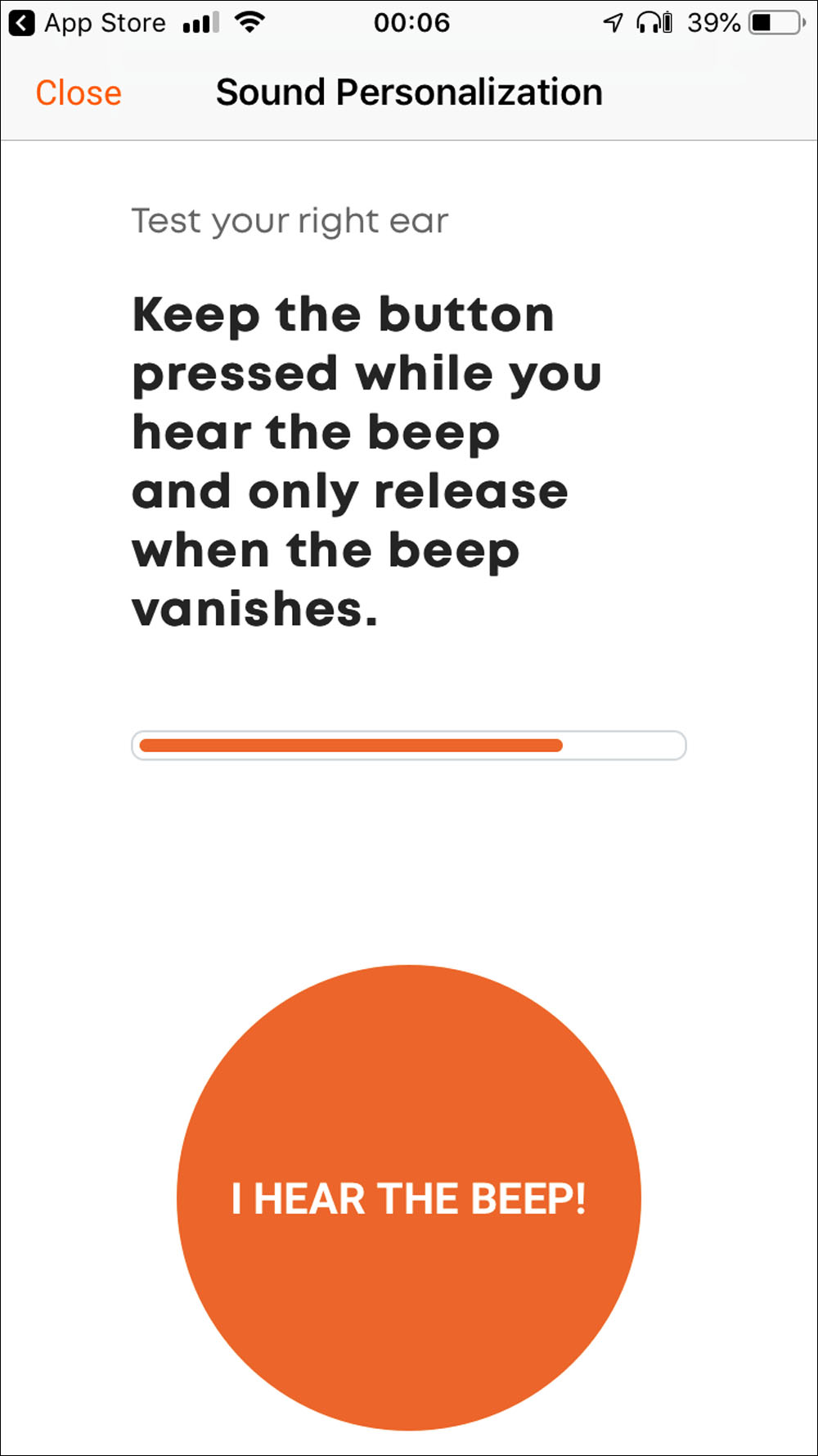 ในแอพฯ MIY มีขั้นตอนให้คุณสร้างข้อมูลความสามารถในการได้ยินของหูทั้งสองข้างด้วยระบบทดสอบที่ให้คุณทำด้วยตัวเอง โดยการปล่อยความถี่ที่มีความเข้มของเสียงต่างๆ กัน จากนั้นแอพฯ จะบันทึกข้อมูลการได้ยินของหูทั้งสองข้างของคุณเอาไว้เพื่อดูว่า ประสาทหูของคุณมีความบกพร่องตรงความถี่ไหนบ้าง จากนั้นตัวแอพฯ จะทำการชดเชยอาการบกพร่องดังกล่าวเอาไว้ เป็น profile ของคุณเอง ขณะเปิดเพลงฟัง ถ้าคุณต้องการชดเชยความถี่ส่วนที่หูของคุณบกพร่องในการได้ยินลงไปในเพลงนั้น ก็กด activate โปรไฟล์ที่คุณบันทึกไว้ออกมาใช้ ฟังท์ชั่นนี้สามารถปรับเพิ่ม/ลดผลของมันได้ หรือจะสั่งปิด (deactivate) การทำงานของฟังท์ชั่นนี้ไปเลยก็ได้ ใครมีโอกาสซื้อหูฟังตัวนี้ไปใช้ ผมแนะนำให้ลองใช้ฟังท์ชั่นนี้ดู สนุกดี กับบางเพลงรู้สึกว่า เมื่อเปิดใช้ฟังท์ชั่นนี้แล้วเสียงดีขึ้น
