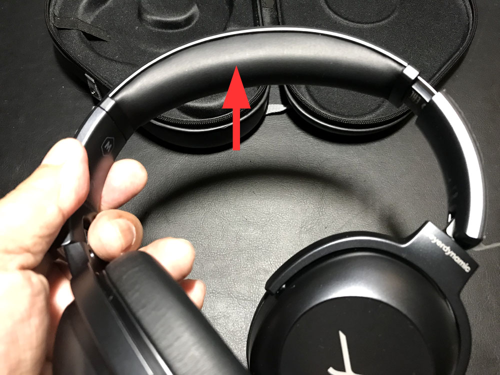 มีกล่องใส่สำหรับพกพาออกไปนอกสถานที่ให้ด้วย เป็นกล่องทรงแข็งแต่น้ำหนักเบา ตรงรอยต่อระหว่างบอดี้ (speaker housing) กับแถบคาดศีรษะ (head band) ของตัวหูฟัง เชื่อมต่อกันด้วยกลไกที่สามารถพับตัวบอดี้ของหูฟัง (ศรชี้ภาพล่าง) ได้ทั้งสองข้างจนสามารถจัดเก็บลงกล่องได้