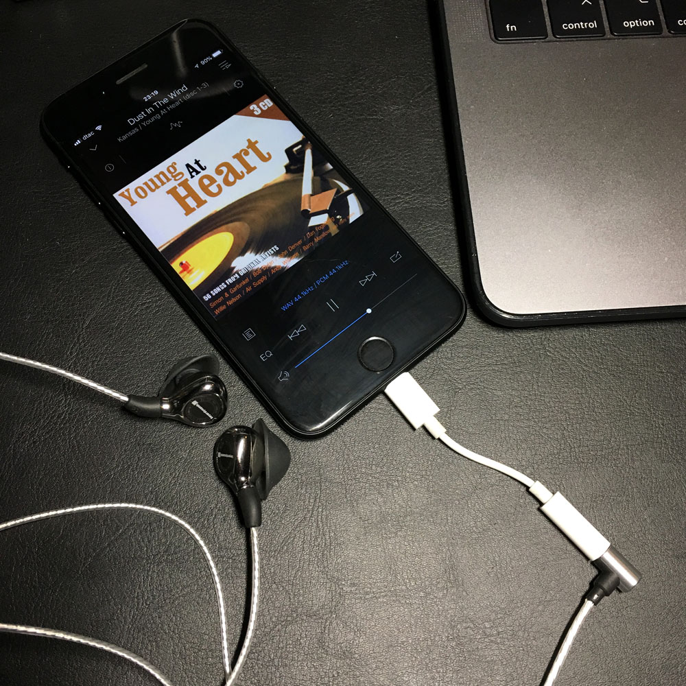 จากการทดลองฟังเพลงที่เป็นไฟล์ WAV 16/44.1 ที่ผมริปมาจากแผ่นซีดี และฟังเพลงจากแอพฯ Spotify กับแอพ TIDAL ผ่านอะแด๊ปเตอร์ Lightning > 3.5mm บน iPhone 7 ซึ่งเพลงส่วนใหญ่ที่ทดลองฟังในขั้นตอนนี้จะเป็นเพลงท็อปฮิตทั่วๆ ไป ไม่ใช่เพลงไฮเอ็นด์ที่พิถีพิถันในการบันทึกเสียง ซึ่งผลลัพธ์ที่ได้มีอยู่ 2 ประเด็นที่ผมพบ อย่างแรกคือ “ความไว vs. กำลังขับ” ผมพบว่า กำลังขับจากตัวอะแด๊ปเตอร์ Lightning ของแอ๊ปเปิ้ลที่มีอยู่แค่น้อยนิด แต่ก็ยังสามารถขับดันหูฟัง XELENTO REMOTE ตัวนี้ให้ร้องเพลงเพราะๆ ได้อย่างสบาย เสียงโดยรวมออกมาน่าพอใจ ไม่รู้สึกถึงอาการอั้นที่มักจะเกิดจากปัญหากำลังขับไม่พอ เวทีเสียงทั้งหมดจะลอยตัวอยู่รอบๆ ศีรษะ ไม่ถึงกับฉีกตัวออกไปได้ไกลมาก แต่ก็สามารถแยกแยะเสียงดนตรีในย่านกลางและแหลมออกจากกันได้ดี มีเฉพาะในย่านทุ้มเท่านั้นที่เมื่อฟังเพลงที่มีเบสเยอะๆ จะปรากฏอาการขุ่นและเบลอออกมาให้ได้ยิน มีปัญหาในการแยกแยะตัวโน๊ตย่านต่ำอยู่บ้าง แต่กับเพลงที่เน้นความถี่ย่านกลาง–แหลมเป็นหลัก อย่างแนวคันทรี่, บลูกลาส และเพลงที่ใช้เครื่องดนตรีย่านต่ำน้อยชิ้น อย่างเช่นพวกสแตนด์ดาร์ดแจ๊ส จะไม่มีปัญหานี้ สรุปคือ กำลังขับของอะแด๊ปเตอร์ Lightning > 3.5mm บน iPhone 7 สามารถขับหูฟัง XELENTO REMOTE ได้แต่ไม่เต็มร้อย ฟังเอาเพลินได้ดีเพียงพอสำหรับคนทั่วไป เพราะจุดเด่นที่ผมได้ยินจากหูฟังตัวนี้ตั้งแต่นาทีแรกที่ลองฟังกับไอโฟนเซ็ตนี้ก็คือ contrast dynamic ที่รับรู้ได้ถึงการผ่อนคลายและเร่งเร้าของทั้งเสียงร้องและเสียงดนตรี ทั้งในช่วง ดังลงไปหาเบา และช่วงเบาทะยานขึ้นไปหาดัง ซึ่งคุณสมบัติข้อนี้ทำให้ฟังแล้วได้อารมณ์เพลง