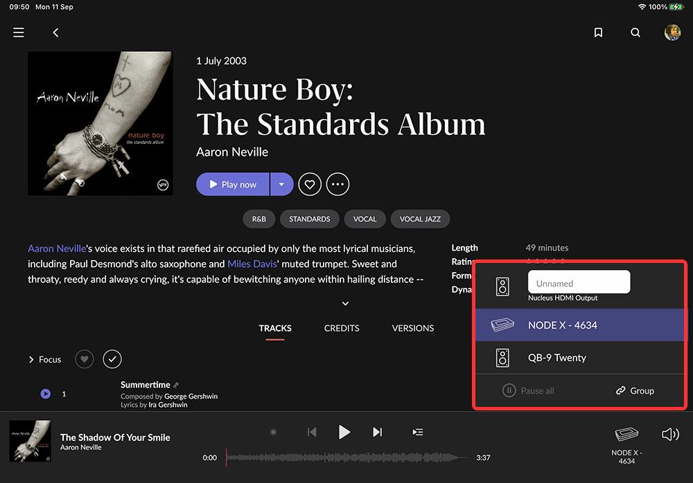 ตลอดการทดสอบครั้งนี้ ผมใช้ Roon nucleus+ ทำหน้าที่เป็นสตรีมเมอร์ ทรานสปอร์ต เล่นไฟล์เพลงของผมเองที่เก็บอยู่ใน NAS แล้วส่งให้ NODE X ทางอินพุต LAN (Ethernet) ส่วนตอนฟังผ่าน QB-9 ‘Twenty’ จาก nucleus+ ส่งไปให้ QB-9 ‘Twenty’ ผ่านทางอินพุต USB (เพราะ QB-9 ‘Twenty’ มีอินพุต USB อย่างเดียว!)