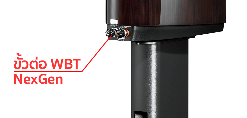 ที่ผมชอบอีกอย่างหนึ่งคือลำโพงคู่นี้ให้ขั้วต่อสายลำโพงมาเป็นแบบ single wire ไม่เปลืองสายลำโพง สามารถลงทุนกับสายลำโพงดีๆ ได้ง่ายขึ้น และตัวขั้วต่อก็ใช้ของดีซะด้วย เป็นของ WBT รุ่น NextGen ติดตั้งอยู่ที่ส่วนฐานของตัวตู้ ขั้วต่อของลำโพงจับยึดขั้วต่อของสายลำโพงไว้ได้แน่นหนามั่นคงมาก แม้ว่าจะใช้สายลำโพงที่มีน้ำหนักเยอะก็ไม่หลุดง่ายๆ โดยเฉพาะขั้วต่อ banana ซึ่งผมชอบใช้ก็เสียบได้แน่นหนาดีมาก