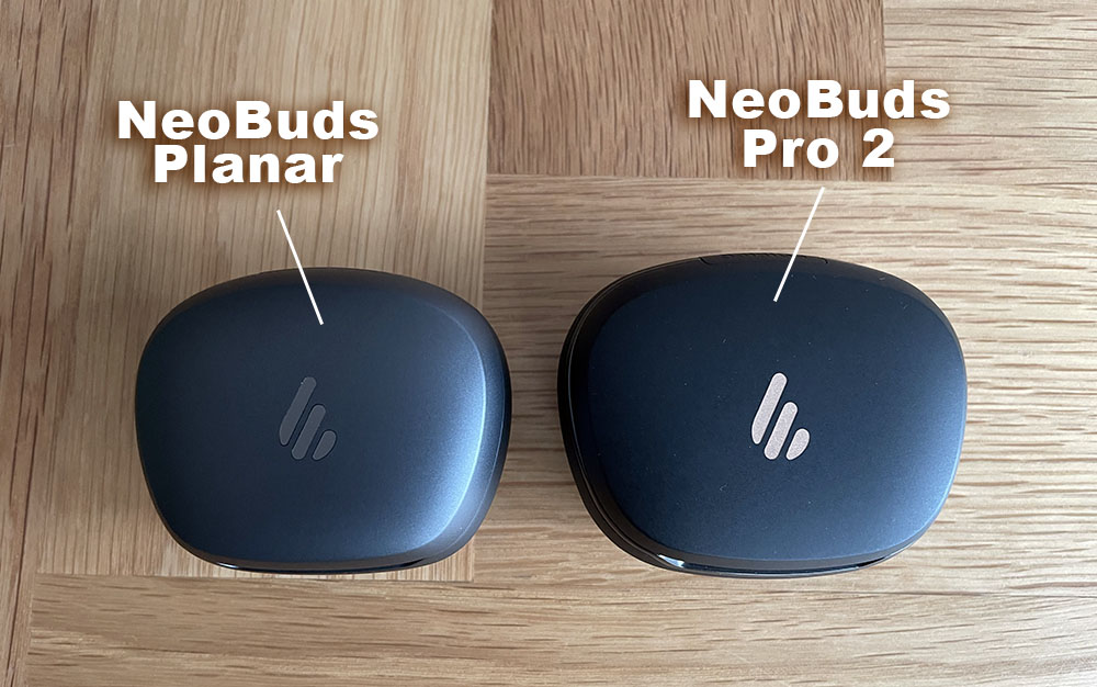 รุ่นแรก NeoBuds Pro (2021) ของผมแบตเตอรี่ข้างซ้ายกลับดาวไปแล้ว ส่วนตัว NeoBuds Pro 2 ยังใช้งานได้ดีอยู่ ตัว NeoBuds Planar ดูเหมือนจะเข้ามาแทรกเป็นรุ่นพิเศษในกลุ่ม NeoBuds เพราะมันไม่ได้ใช้โค๊ดรหัสว่า ‘Pro’ ห้อยท้ายรุ่น ในภาพข้างบนคือตัว NeoBuds Planar (ซ้าย) วางประกบกับ NeoBuds Pro 2 (ขวา) แสดงให้เห็นว่า กล่องของตัว NeoBuds Planar มีขนาดเล็กกว่า NeoBuds Pro 2 นิดหน่อย แต่รูปลักษณ์ภายนอกคล้ายกัน แสดงว่าทาง Edifier เขาพัฒนาทั้งตัวหูฟังและตลับเก็บหูฟังไปพร้อมๆ กัน