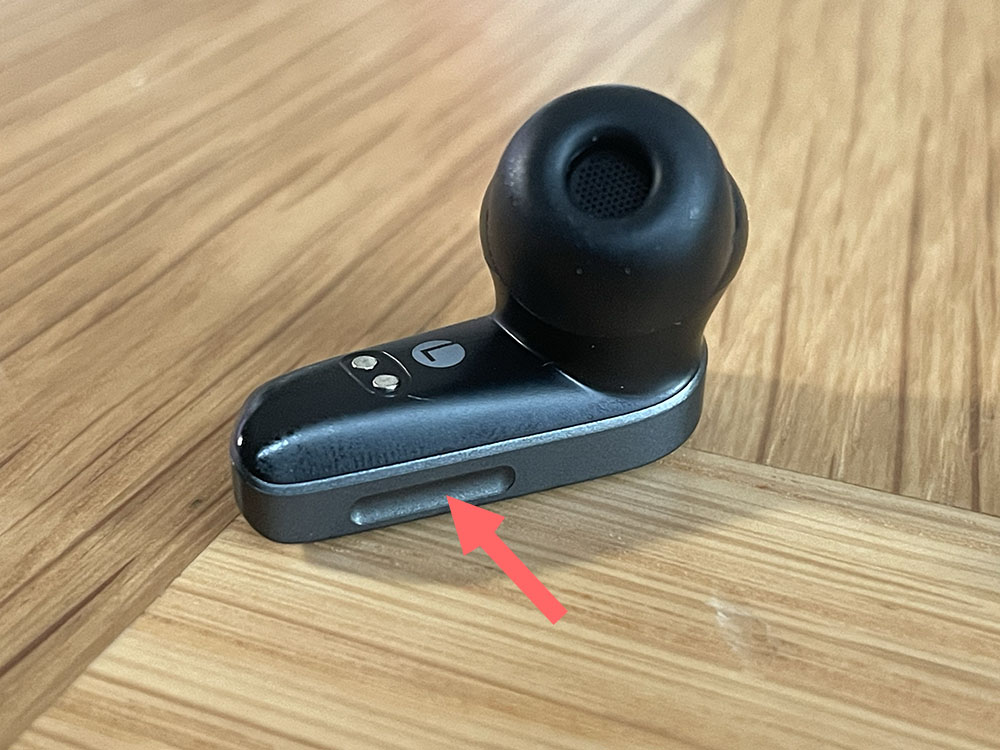 ถ้าสังเกต พื้นที่ตรงตำแหน่งที่ใช้รองรับการสัมผัสเพื่อสั่งงานของหูฟังตัวนี้ ผู้ผลิตเขาจะทำเป็นร่องยาวๆ เอาไว้บนสันด้านข้างของตัวหูฟังทั้งสองข้าง (ศรชี้ในภาพข้างบน) ซึ่งเหตุผลที่เขาทำจุดสัมผัสด้วยการเซาะเป็นร่องลึกลงไปก็เพื่อป้องกันไม่ให้เราสัมผัสกับจุดสั่งงานโดยไม่ตั้งใจนั่นเอง ดังนั้น ถ้าต้องการกดสัมผัสเพื่อสั่งงาน แนะนำให้ใช้ปลายเล็บจิกลงไปในร่องนี้เบาๆ จะสั่งงานได้ง่ายขึ้น ถ้าเอาปลายนิ้วไปแตะเฉยๆ จะไม่รับคำสั่ง เพราะนิ้วของเราจะไม่ไปสัมผัสกับจุดรับแรงกดที่อยู่ในร่อง