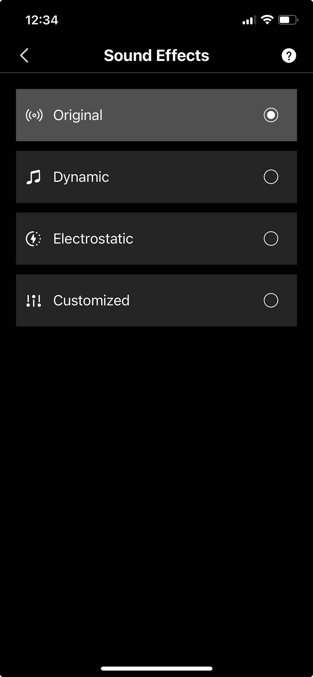 เป็นเมนูให้ใช้ปรับแต่งเสียง ซึ่งในนั้นมีหัวข้อเมนูย่อยให้ปรับเลือกทั้งหมด 4 หัวข้อ เริ่มจาก Original อันนี้คือเสียงที่มาจากต้นทาง ไม่มีการปรับแต่งใดๆ หัวข้อที่สองคือ Dynamic เสียงจะเข้มข้นมากขึ้น เพราะมีการบู๊สต์ขึ้นมาทั้งทุ้ม–กลาง–แหลมโดยยังคงรูปแบบของโทนัลบาลานซ์เดิมไว้ กับเพลงเร็วๆ จะฟังมันส์มากขึ้น ส่วนข้อสามคือ Electrostatic อันนี้จะให้เสียงกลาง–แหลมที่โดดเด่น ติดโปร่งนิดๆ เบสจะถอยไปอยู่หลังกลาง–แหลมและลดความดังลง เหมาะกับหูฟังที่ใช้ไดเวอร์แผ่นฟิล์มจะถูกเน้นให้โดดเด่นมากขึ้น ใครชอบฟังเสียงกลาง–แหลมเด่นๆ น่าจะชอบอ๊อปชั่นนี้ ส่วนอันสุดท้ายคือ Customized เป็นอ๊อปชั่นที่เปิดโอกาสให้คุณปรับแต่งเสียงตามใจชอบด้วยตัวเอง