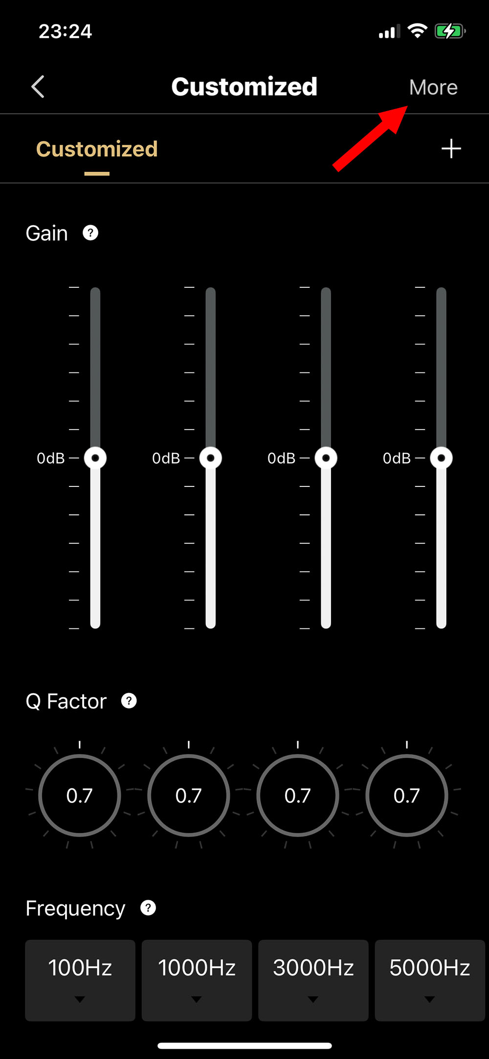 มีอีคิวมาให้ปรับตั้ง 4 แบนด์ โดยมีหัวข้อปรับแต่งให้มา 3 หัวข้อ ที่ปรับได้ คือ Gain, Q Factor และ Frequency ซึ่งความถี่ที่สามารถปรับตั้งได้จะอยู่ระหว่าง 20Hz ขึ้นไปจนถึง 6000Hz โดยแยกเป็น 4 แบนด์ ทางผู้ผลิตตั้งความถี่เริ่มต้นมาให้ที่ 100Hz, 1000Hz, 3000Hz และ 5000Hz คุณจะลองปรับตั้งตามความถี่ที่ผู้ผลิตกำหนดตั้งต้นมาให้ก่อนก็ได้ พอเริ่มคุ้นเคยแล้ว ค่อยลองปรับเปลี่ยนความถี่ตามที่ต้องการได้อีก ซึ่งคนที่พอมีความเข้าใจกับการปรับตั้งคงจะรู้สึกสนุกกับการปรับแต่งเสียงจากฟังท์ชั่นนี้ ส่วนคนที่ไม่มีความรู้ความเข้าใจจะลองปรับเล่นก็ไม่เสียหายอะไร ถ้าปรับแล้วออกทะเลก็ยังสามารถกลับไปเลือกฟังโหมดเสียงที่ผู้ผลิตปรับสำเร็จมาให้ได้ ซึ่งจากการทดลองฟังผมพบว่า ทั้ง 3 โหมด คือ Original, Dynamic และ Electrostatic ก็ถือว่าครอบคลุมรสนิยมในการฟังของผมแล้ว เชื่อว่าคนทั่วไปก็น่าจะแฮ้ปปี้กับโหมดเสียงสำเร็จรูปทั้งสามแบบนี้เช่นกัน