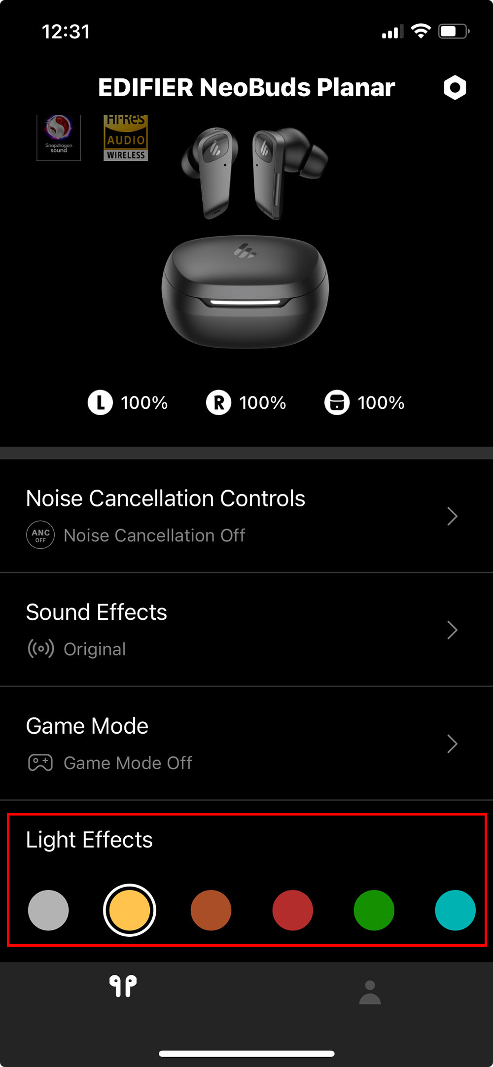 ที่แถวล่างสุดของหน้า Home ตรงหัวข้อ Light Effects เป็นที่เลือกสีของไฟ LED บนตัวตลับ โดยมีให้เลือกทั้งหมด 6 สีด้วยกัน ซึ่งอันนี้ไม่มีหลักเกณฑ์อะไร แล้วแต่ชอบเลย..!!