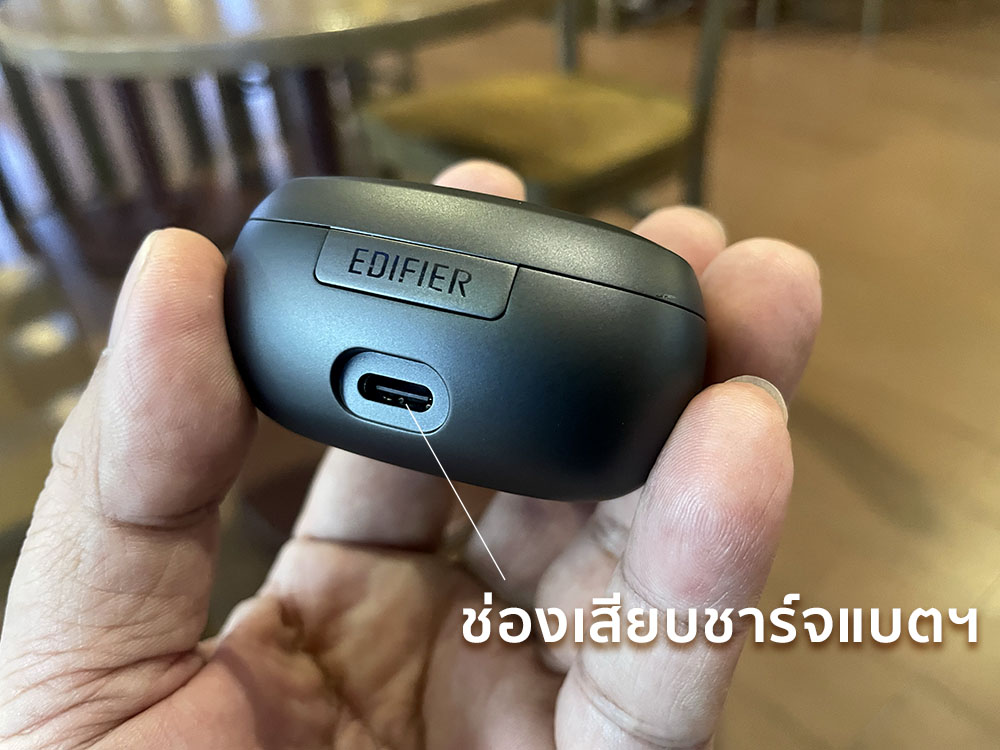 ที่ด้านหลังของตลับจะมีช่องเสียบหัวแจ็ค USB-C อยู่หนึ่งจุด ไว้ให้เสียบหัวแจ็ค USB-C ของสายชาร์จที่แถมมาให้ในกล่อง เมื่อชาร์จจนเต็ม จะสามารถใช้งานติดต่อกันตลอดเวลาได้นาน 5.5 ชั่วโมง กรณีที่เปิดใช้งานฟังท์ชั่น ANC แต่ถ้าใช้งานต่อเนื่องโดยปิดฟังท์ชั่น ANC จะยืดเวลาได้ยาวถึง 7.5 ชั่วโมง ในขณะที่แบตเตอรี่ในตลับจะช่วยชาร์จเพิ่มเวลาใช้งานไปได้อีก 22 ชั่วโมงครึ่ง กรณีไม่ใช้ฟังท์ชั่น ANC หรือได้ 15 ชั่วโมง ถ้าใช้ฟังท์ชั่น ANC (*สรุปคือ แบตเตอรี่ในตัวหูฟัง + จากตลับใส่หูฟังรวมกัน ถ้าไม่เปิด ANC จะใช้ได้นาน 30 ชั่วโมง ถ้าเปิด ANC จะใช้ได้นาน 20 ชั่วโมง) และหูฟังรุ่นนี้ยังรองรับการชาร์จแบบ fast charging ด้วย ในอัตราชาร์จ 10 นาที ใช้ได้ 2 ชั่วโมง