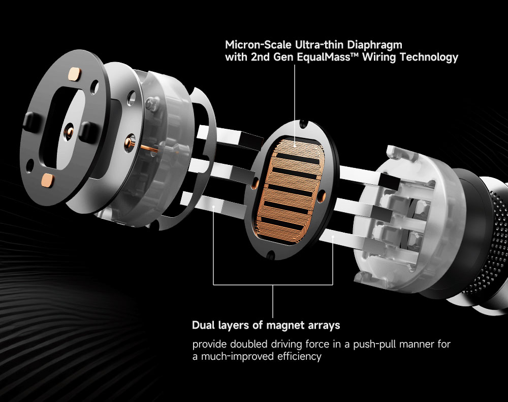 และความพิเศษที่ว่าอยู่ที่ “ไดอะแฟรม” ที่ใช้ในหูฟังรุ่นนี้ ซึ่งโดยปกติ ในหูฟังเอียร์บัดแบบไร้สายส่วนใหญ่จะใช้ไดเวอร์ทรงกรวยไดนามิก แต่ไดเวอร์ที่ใช้ในรุ่น NeoBuds Planar ตัวนี้เป็นไดเวอร์แผ่นฟิล์ม Planar Magnetic ที่ถูกแพ็คให้อยู่ในลักษณะเป็นโมดูลไดเวอร์ขนาด 12 mm โดยมีแม่เหล็กติดตั้งอยู่ทั้งสองด้านของแผ่นฟิล์มไดอะแฟรมที่มีความบางมากแค่ 2 ไมครอน ซึ่งแม่เหล็กที่ว่านี้จะส่งแรงกระทำกับเส้นตัวนำบางๆ ที่ติดตั้งอยู่บนแผ่นฟิล์มในลักษณะ “ผลัก/ดัน” (push/pull) ไปตามขั้วของแม่เหล็กที่แปรเปลี่ยนสลับไปตามสัญญาณเสียงที่เข้ามา ก่อให้เกิดเป็นมูพเม้นต์การขยับเข้า/ออกของแผ่นฟิล์มไดอะแฟรมในการผลักและดึงอากาศจนเกิดเป็น “คลื่นเสียง“