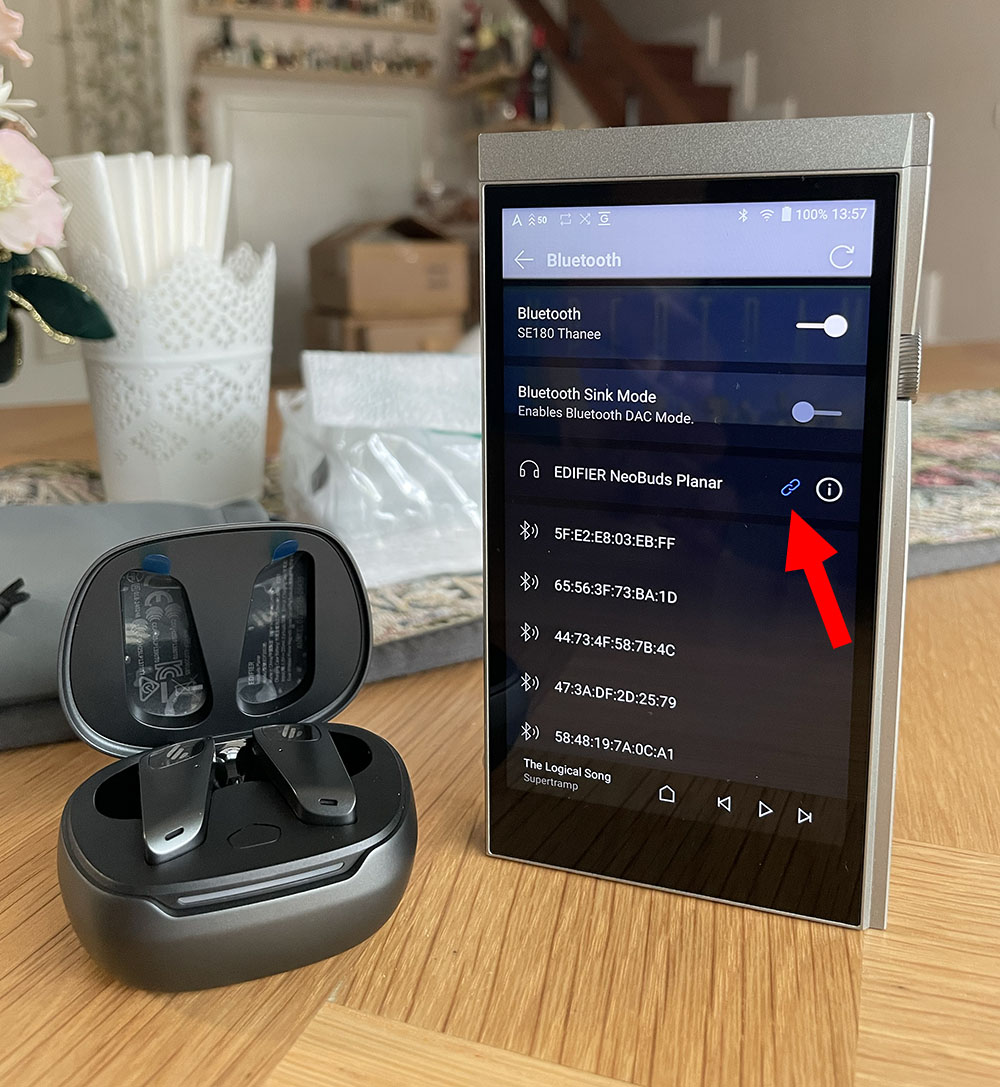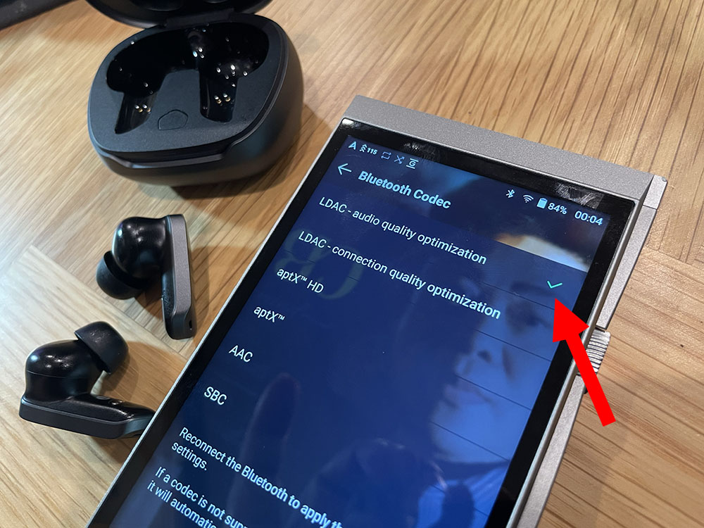เพื่อการทดลองฟังเพลงที่เน้นคุณภาพแบบจริงๆ จังๆ ผมจึงเปลี่ยนมาใช้เครื่องเล่นไฟล์เพลงพกพา (DAP) รุ่น A&Futura SE180 ของ Astell&Kern ทำหน้าที่เล่นไฟล์เพลงแทน iPhone 12 เพื่อทดลองฟังคุณภาพเสียงระดับไฮเรซฯ ของหูฟัง NeoBuds Planar ตัวนี้ ซึ่งขั้นตอนก็ไม่มีอะไรยุ่งยาก เพราะภาค DAC ของ A&Futura SE180 ตัวนี้ก็รองรับโปรโตคอล LDAC อยู่แล้ว แค่ผมทำการเชื่อมต่อ NeoBuds Planar เข้ากับ A&Futura SE180 ผ่านทาง Bluetooth เสร็จแล้ว จากนั้นก็เข้าไปในเมนูของ A&Futura SE180 เพื่อทำการปรับเลือก Bluetooth Codec ให้รองรับ LDAC เท่านั้นเอง