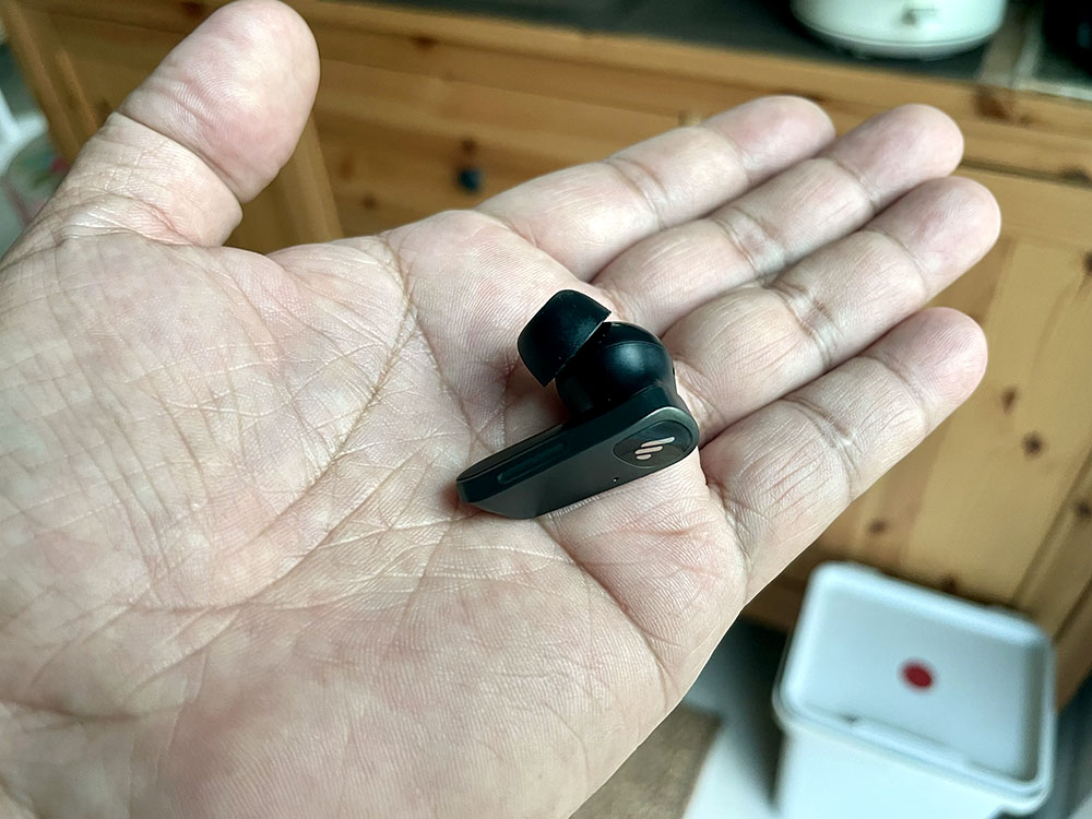 บอดี้ของตัวหูฟังมีขนาดเล็กมาก แถมน้ำหนักเบา เวลาสวมเข้ากับรูหูแล้วจะไม่รู้สึกถ่วงหนัก ทำให้ใส่ได้นานโดยไม่รู้สึกอึดอัด การเลือกขนาดของจุกยางที่พอดีกับรูหูจะส่งผลมาก ทั้งในแง่ของความสบายในการสวมใส่และในแง่คุณภาพของเสียงที่ได้ด้วย หูของผมชอบขนาด M มันฟิตกำลังดี ตอนใส่แล้วสั่งเปิดใช้โหมด noise cancelling จะรับรู้ได้ถึงความสงัดเงียบที่ชัดเจน..