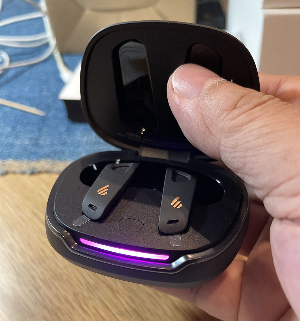 ที่ด้านหน้าของตลับใส่หูฟังจะมีแถบแสงยาวๆ อยู่แถบหนึ่ง ใช้แสดงสถานะการทำงานของตัวหูฟังซึ่งผู้ใช้สามารถปรับเลือกสีได้ ซึ่งทางแบรนด์เลือกใช้ “สีขาว” มาให้จากโรงงาน …