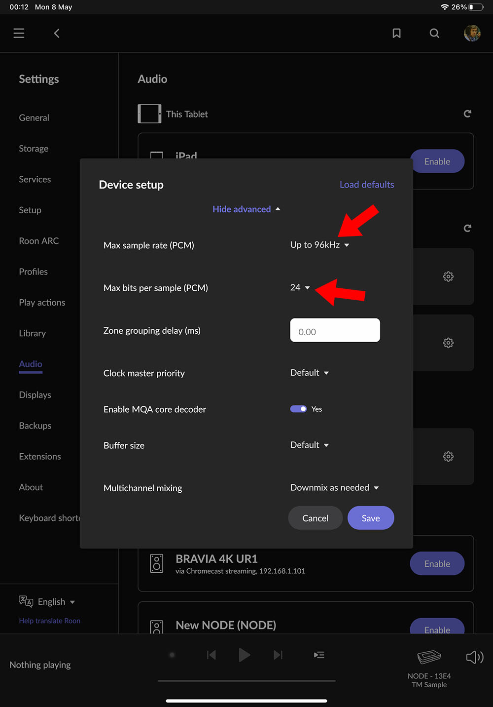แม้กระทั่งไฟล์เพลง 16/44.1 ที่ผมริปมาจากแผ่นซีดี ก็ยังต้องถูกโปรแกรม Roon แปลงทั้ง sample rate (ลูกศรสีเขียว) และ bit depth (ลูกศรสีฟ้า) ให้ออกมาเป็นสัญญาณ 24/48 ก่อนส่งออกไปให้ภาค DAC ของ QD35 ซึ่งไฟล์เพลงทุกระดับที่ถูกแปลงจะได้คุณภาพเสียงออกมาที่ระดับ High quality ส่วนไฟล์เพลงที่ได้คุณภาพเสียงระดับ Lossless เต็มมาตรฐานของไฟล์ไฮเรซฯ จริงๆ ก็มีแค่ไฟล์ 24/48 กับไฟล์ 24/96 เท่านั้น