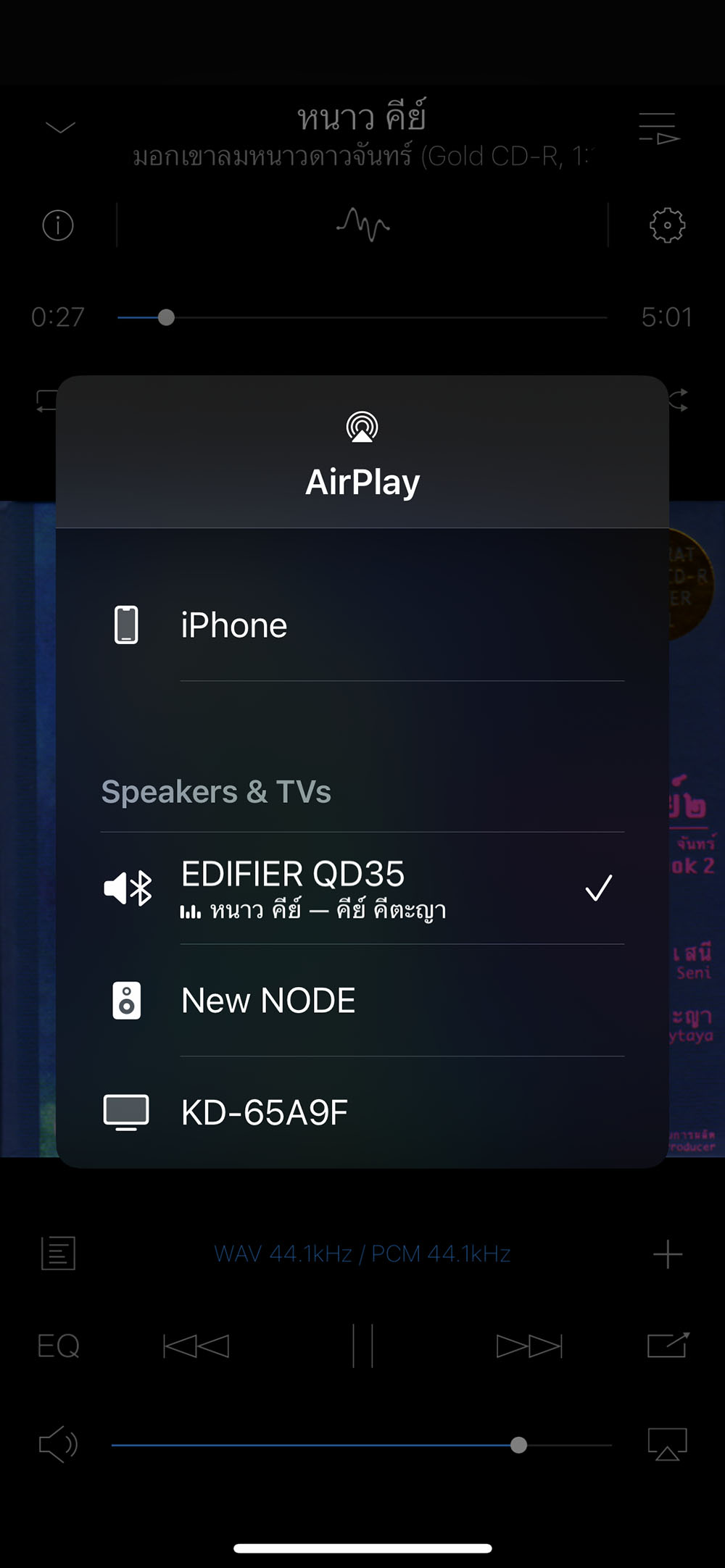 ผมลองสตรีมไฟล์เพลงผ่านเข้าที่อินพุต Bluetooth ของ QD35 จากการเล่นไฟล์เพลง WAV 16/44.1 บน iPhone 12 ของผมด้วยแอพลิเคชั่น Onkyo HF Player (สองภาพข้างบน) ซึ่งในทางเทคนิคแล้ว iPhone 12 จะเข้ารหัสสัญญาณเสียงที่ระดับ 44.1kHz ด้วยฟอร์แม็ต AAC ก่อนจะปล่อยออกไปกับคลื่น Bluetooth ไปให้ QD35 ซึ่งไม่ถือว่าเป็น “ที่สุด” ของคุณภาพเสียงสำหรับ QD35 แต่เสียงที่ออกมาก็ถือว่าอยู่ในระดับที่ดีน่าพอใจมากแล้ว เสียงโดยรวมออกมาเปิดกระจ่าง ทั้งทางด้าน “ความถี่” และ “ไดนามิก” ผมไม่พบอาการดีเลย์หรืออับทึบของความถี่ย่านสูงเกิดขึ้น แสดงว่าวิศวกรของ Edifier จูนเสียงมาเพื่อรองรับกับฟอร์แม็ต AAC จากอุปกรณ์ของแอ๊ปเปิ้ลมาเป็นอย่างดี