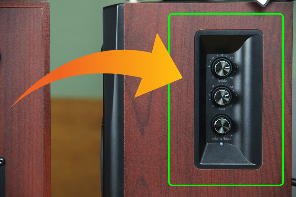 ปุ่มควบคุมการทำงานสามปุ่ม ติดตั้งอยู่ด้านข้างของลำโพงแซทเทิ้ลไล้ท์ตัวขวา ปุ่มบนสุดใช้หมุนปรับเพิ่ม/ลดปริมาณเสียงในย่านสูง (treble) ตัวกลางใช้หมุนปรับเพิ่ม/ลดปริมาณเสียงในย่านทุ้ม (Bass) ซึ่งทั้งสองย่านเสียงนั้นมี range ให้ปรับค่อนข้างกว้าง คือตั้งแต่ -6dB ถึง +6dB ทำให้มีความยืดหยุ่นสูงในการปรับจูนโทนเสียงเพื่อชดเชยกับสัญญาณจากแต่ละอินพุตที่ออกมาถูกใจคนฟัง