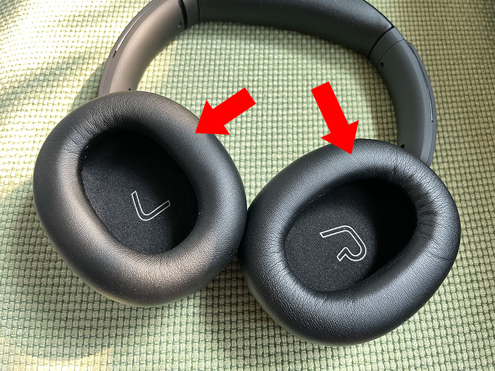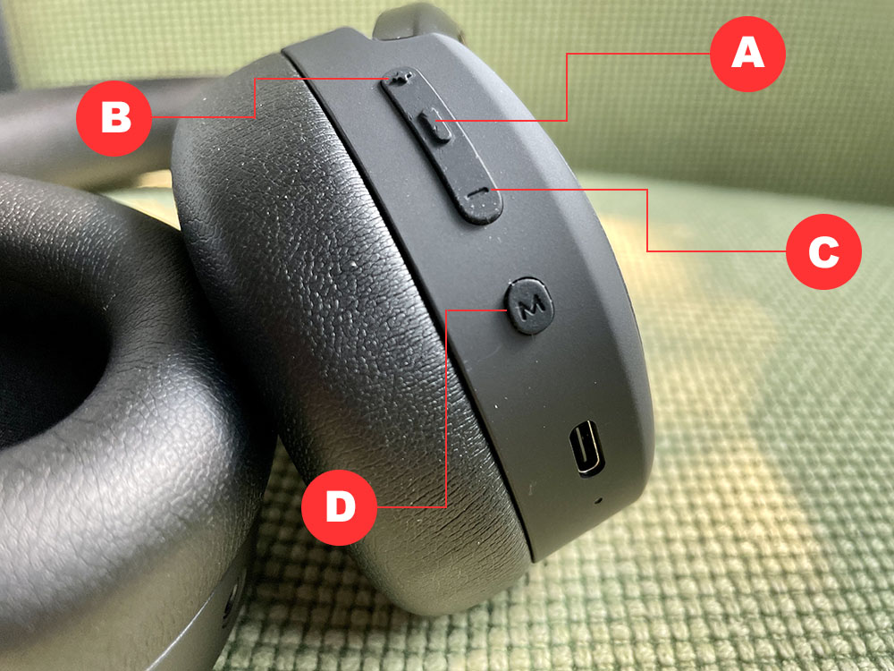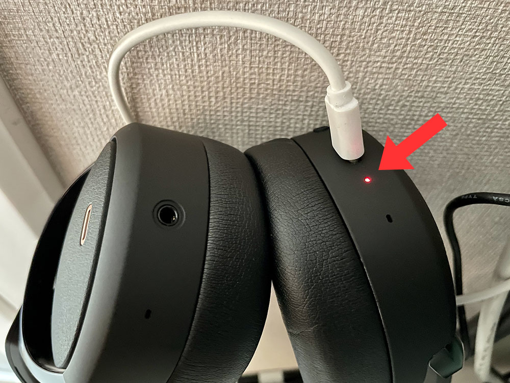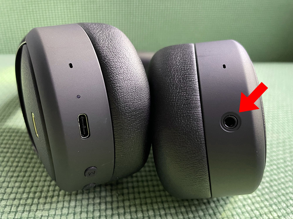ช่องเสียบขั้วต่อ USB-C ที่หูฟังข้างขวา (R) ให้มาสำหรับเสียบสายชาร์จแบตเตอรี่ (แถมสายมาในกล่อง) ซึ่งใช้เวลาชาร์จจนเต็มอยู่ที่หนึ่งชั่วโมงครึ่ง (ประมาณ 90 นาที)