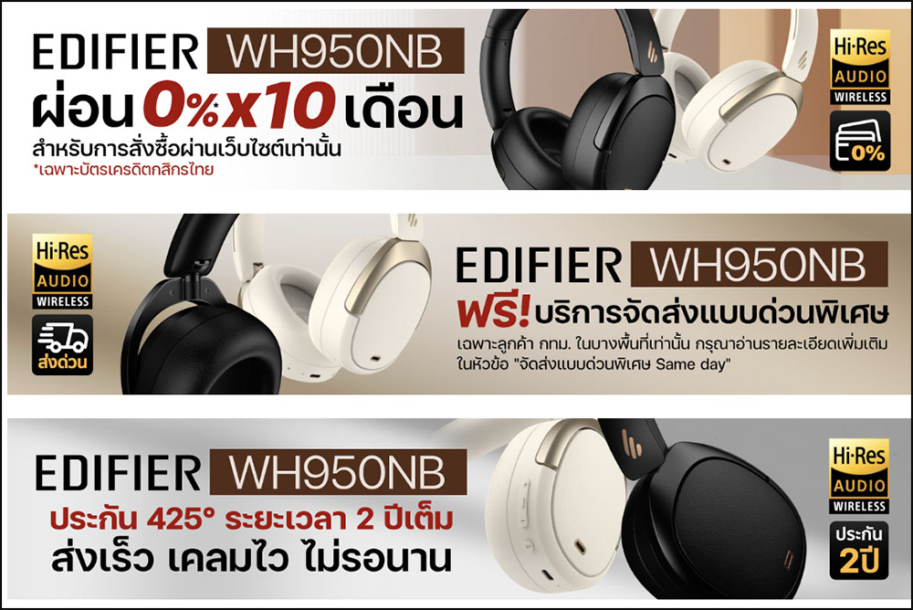 สำหรับการใช้ฟังเพลง ผมยกให้หูฟัง Edifier WH950NB ตัวนี้ยืนหนึ่งในระดับราคาไม่เกิน 7x,xxx บาท ในขณะนี้.!!! /