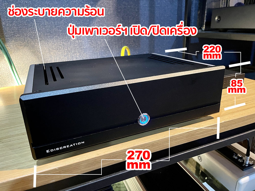 ตัวเน็ทเวิร์ค สวิทช์ที่อยู่ในระดับราคาไม่เกิน 2 หมื่นบาทที่พบเห็นอยู่ในตลาดทุกวันนี้ทั้งหมดจะใช้วิธีแกะเอาไส้ในของตัวเน็ทเวิร์ค สวิทช์ที่ออกแบบมาใช้กับวงการไอทีและคอมพิวเตอร์มาใช้เป็นพื้นฐาน จากนั้นก็ทำการโมดิฟายด้วยการปรับเปลี่ยนอุปกรณ์บางชิ้นที่มีคุณภาพสูงกว่าลงไปแทน เปลี่ยนตัวถังจากพลาสติกเป็นโลหะ มีการออกแบบภาคจ่ายไฟแบบลิเนียร์เข้ามาเสริม ในขณะที่ตัว Silent Switch OCXO ของแบรนด์ Ediscreation ตัวนี้ได้ฉีกกฏเกณฑ์มาตรฐานขึ้นไปอีกระดับ โดยใช้วิธีสร้างขึ้นมาใหม่ ไม่ได้ใช้วิธีโมดิฟายจากไส้ในของตัวเน็ทเวิร์ค สวิทช์ที่ใช้ในวงการไอที/คอมพิวเตอร์เหมือนกับตัวที่มีราคาต่ำกว่า และแน่นอนว่า รูปร่างหน้าตาและขนาดตัวเครื่องก็ถูกออกแบบมาให้มีความแตกต่างกันอย่างชัดเจน ไปดูกับว่ามันต่างมากแค่ไหน…