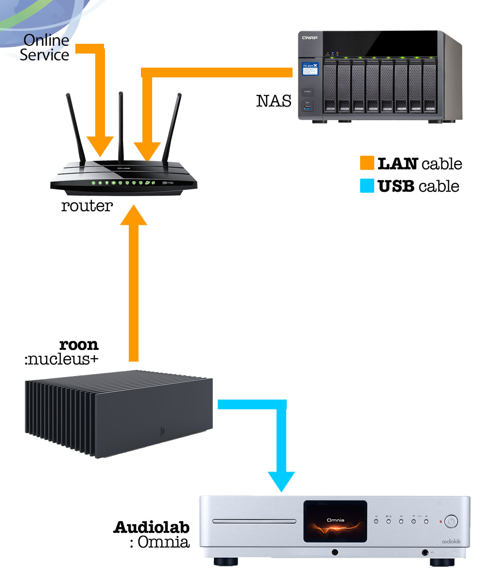 ซิสเต็มที่ผมใช้ทดสอบประสิทธิภาพของตัว Silent Switch OCXO ประกอบด้วยตัวออลอินวันรุ่น Omnia ของ Audiolab (REVIEW) ซึ่งผมให้มันทำหน้าที่เป็น USB-DAC + Preamp โดยรับสัญญาณดิจิตัลมาจาก Roon : nucleus+ ซึ่งทำหน้าที่เป็นเน็ทเวิร์ค สตรีมเมอร์ ทรานสปอร์ต ผ่านทางเอ๊าต์พุต USB ของ nucleus+ โดยใช้สาย USB ของ Kimber Kable รุ่น Copper เป็นสะพานเชื่อม จากนั้นก็ดึงสัญญาณอะนาลอก เอ๊าต์พุตจากช่อง Pre-Out ของ Omnia ผ่านสายสัญญาณยาว 6 เมตรรุ่น Gold MK II ของ Life Audio ไปเข้าที่อินพุตของเพาเวอร์แอมป์ Quad รุ่น Artera Stereo Poweramp เพื่อขับลำโพง Monitor Audio รุ่น Silver 100 Limited Edition (REVIEW) โดยมีสายลำโพงของ Kimber Kable รุ่น 12TC เป็นสะพานถ่ายทอดพลังจากเพาเวอร์แอมป์ไปที่ลำโพง
