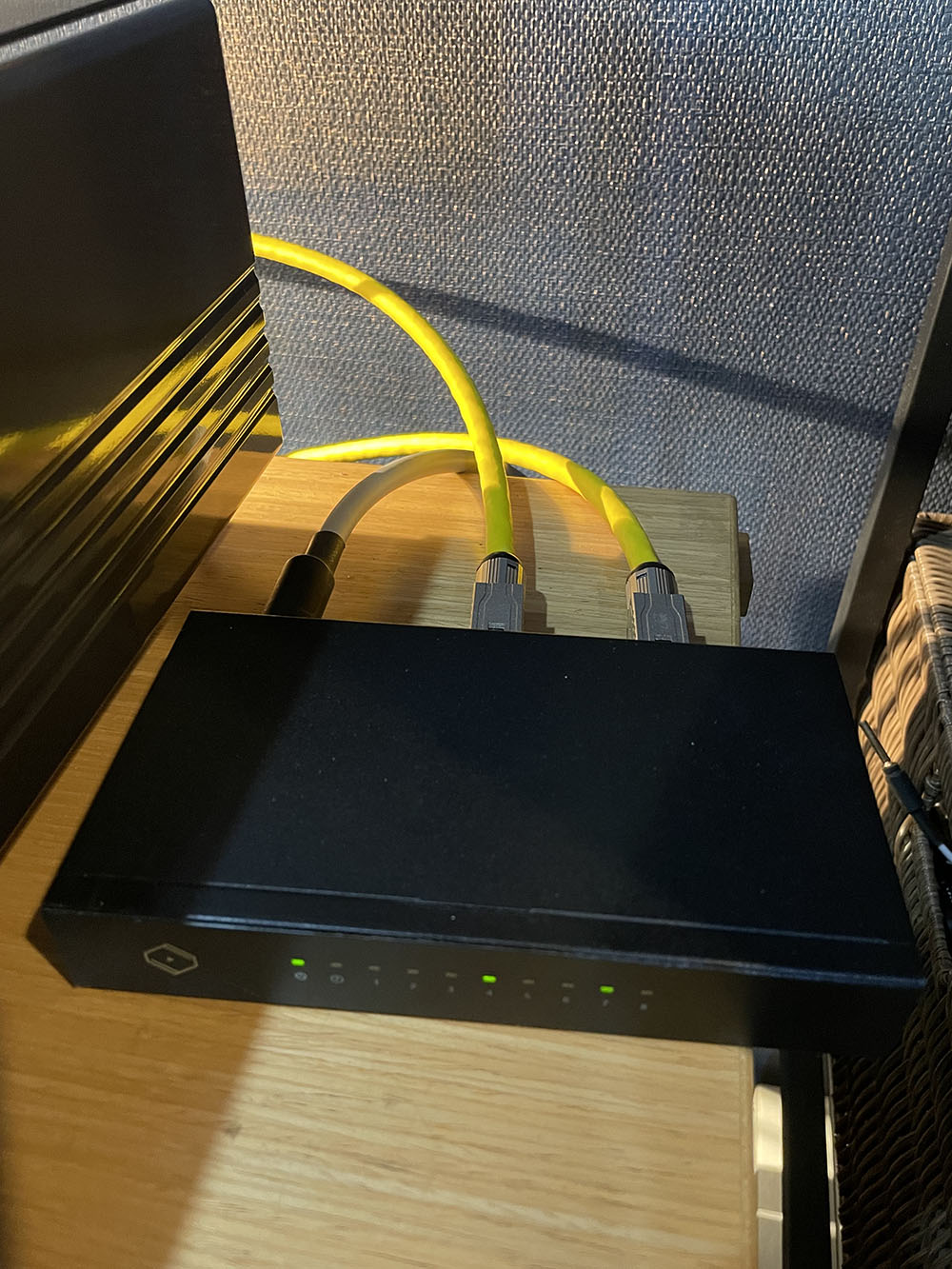 ปัจจุบัน ผมได้เปลี่ยนเอาสาย Ethernet CAT8 สีเหลืองที่คุณอึ่งทำมาให้ลองเข้ามาประจำการในซิสเต็มทดสอบแทนสาย Ethernet CAT6a ชุดเดิมที่เคยใช้อยู่เป็นที่เรียบร้อย