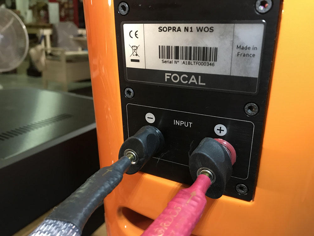 Sopra No.1 ให้ขั้วต่อสายลำโพงมาแค่คู่เดียว ซึ่งเป็นอะไรที่ผมชอบมาก เพราะมันทำให้การแม็ทชิ่งทำได้ง่ายขึ้น เนื่องจากตัวแปรไม่มากเกินไป และเนื่องจากสเปคฯ frequency response (ความถี่ตอบสนอง) ของลำโพงคู่นี้ระบุไว้ว่ามันสามารถตอบสนองทางด้านความถี่สูงขึ้นไปได้ไกลเป็นพิเศษ คือทะลุขึ้นไปได้ถึง 40kHz หรือสี่หมื่นเฮิร์ต นี่คือโจทย์ที่ผมต้องจับมาคิดในการแม็ทชิ่งสายต่อเชื่อมในระบบก็คือสายสัญญาณและสายลำโพงที่มีคุณสมบัติในการยอมให้ความถี่ถ่ายทอดผ่านไปได้ กว้างที่สุดเท่าที่จะทำได้ นั่นทำให้ผมนึกถึงสายสัญญาณและสายลำโพงของ Nordost ต้องขอบคุณทางบริษัท Deco2000 ตัวแทนจำหน่ายผลิตภัณฑ์ของ Nordost ที่ให้ผมยืมสายสัญญาณรุ่น Try2 ติดขั้วต่อ XLR ความยาว 2 เมตร + สายลำโพงรุ่น Try2 ความยาวข้างละ 2 เมตรมาเพื่อใช้ประกอบการทดสอบครั้งนี้ (รีวิวของสายสัญญาณ + สายลำโพงของ Nordost คู่นี้จะตามมาในไม่ช้า)