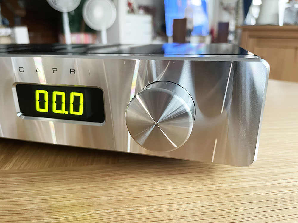 ปุ่มวอลลุ่มของ Capri S2-SC ถูกออกแบบให้ปรับระดับ เพิ่ม/ลด ความดังไว้ 2 ระดับ ขึ้นอยู่กับความเร็วในการหมุนปุ่มวอลลุ่ม คือถ้าหมุนไปตามเข็มนาฬิกาช้าๆ ความดังจะเพิ่มขึ้นช้าๆ แต่ถ้าหมุนไปทางเดิมเร็วขึ้น ความดังก็จะเพิ่มเร็วขึ้น และถ้าคุณหมุนปุ่มวอลลุ่มไปทางซ้าย (ทวนเข็มนาฬิกา) ความดังจะลดลง ถ้าหมึนเร็วจะลดเร็ว–หมุนช้าลดช้า ซึ่งระดับความแตกต่างของความดังในการหมุนไปแต่ละขั้นจะอยู่ที่ 0.5dB โดยเริ่มตั้งแต่เบาสุดคือ 0.0 ขึ้นไปจนถึง 99.5