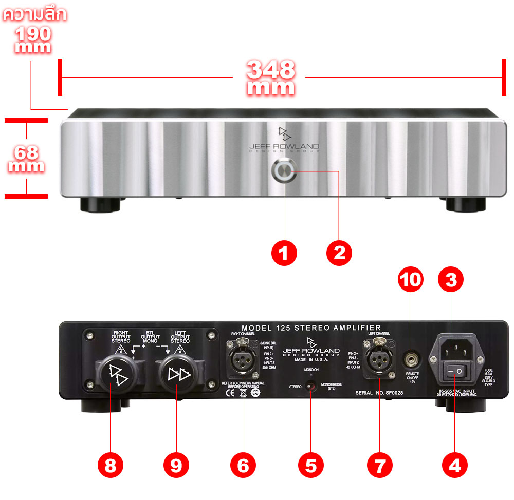 สเปคฯ ของเพาเวอร์แอมป์ Model 125