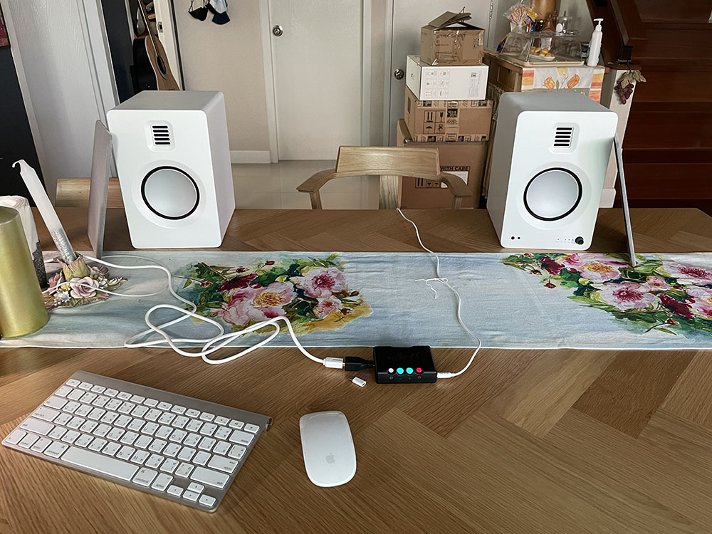 ในช่วงท้ายผมทดลองประสิทธิภาพของช่องอินพุต RCA ของ TUK ด้วยการใช้ external DAC ของ Chord Electronics รุ่น Mojo 2 รับสัญญาณดิจิตัลจากคอมพิวเตอร์แล้วแปลงเป็นสัญญาณอะนาลอกส่งไปที่ TUK ผ่านเข้าทางอินพุต RCA เสียงที่ออกมาดีขึ้นไปอีกขั้น แสดงว่าภาคแอมป์+ลำโพงของ TUK มีคุณภาพสูงทีเดียว โดยเฉพาะเมื่อลองเล่นไฟล์ไฮเรซฯ ไปให้ Mojo 2 แปลงเป็นสัญญาณอะนาลอกส่งไปให้ TUK เสียงออกมาสะอาดเนียนขึ้นไปอีกขั้น ฟังดีมาก..!!