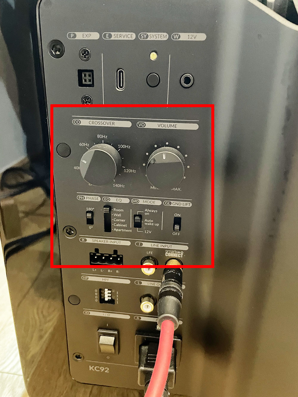 ดูเหมือนทางผู้ผลิตจะลืมให้ข้อมูลการปรับตั้ง dip switch ที่ใช้ในการปรับตั้งจุดตัดความถี่สำหรับสัญญาณ High-pass filter (HPF) ไว้ในคู่มือ..?? สังเกตในรูปก็เขียนคาไว้ว่า See page แแต่ไม่มีเลขที่ระบุ ผมลองหาดูแแล้วก็ไม่เจอ.. แล้วจะปรับตั้งยังไง..?? รู้แต่ว่า ถ้าใช้ลำโพงซับวูฟเฟอร์ KC92 ตัวนี้กับลำโพงไร้สายของ KEF เองไม่ว่าจะเป็นรุ่น LS50 wireless หรือรุ่น LS60 wireless คุณจะสามารถกำหนดจุดตัดของสัญญาณ HPF ผ่านทางแอพลิเคชั่น KEF Connect ได้ แต่ถ้าใช้กับลำโพงพาสซีฟทั่วไปคุณก็จะไม่สามารถใช้แอพฯ KEF Connect ได้เพราะการควบคุมสั่งงานบนแอพฯ จะผ่านเข้าทางลำโพงไร้สาย ไม่ได้เข้าทางลำโพงซับวูฟเฟอร์ ใครคิดจะต่อเชื่อมระบบด้วยวิธีนี้ก็คงต้องข้ามไปก่อน..