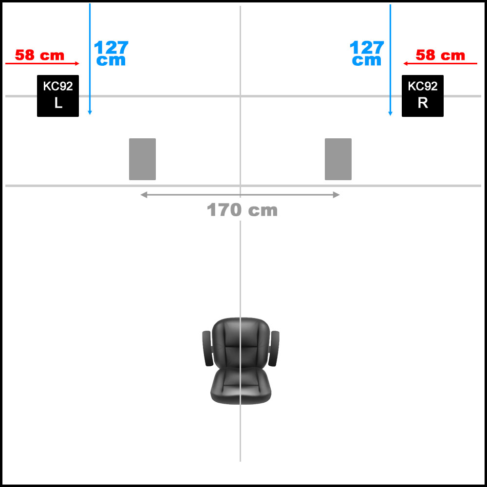 ซึ่งในขั้นตอนแรกนี้จะยังไม่ทำการต่อเชื่อมลำโพงซับวูฟเฟอร์ KC92 เข้าไปในระบบ หลังจากขยับตำแหน่งลำโพงจนได้จุดที่ลงตัว ได้เสียงโดยรวมที่ดีที่สุดแล้ว จึงค่อยเอาลำโพงซับวูฟเฟอร์ทั้งสองตัวเข้าไปติดตั้งเพิ่มเติม ซึ่งในขั้นตอนการไฟน์จูนตำแหน่งของลำโพงซ้ายขวานั้น ผมแนะนำให้พิจารณาที่ โฟกัสของเสียงในย่าน กลางแหลมให้มากเป็นพิเศษ เอาโฟกัสให้เป๊ะมากที่สุดเท่าที่จะสามารถทำได้