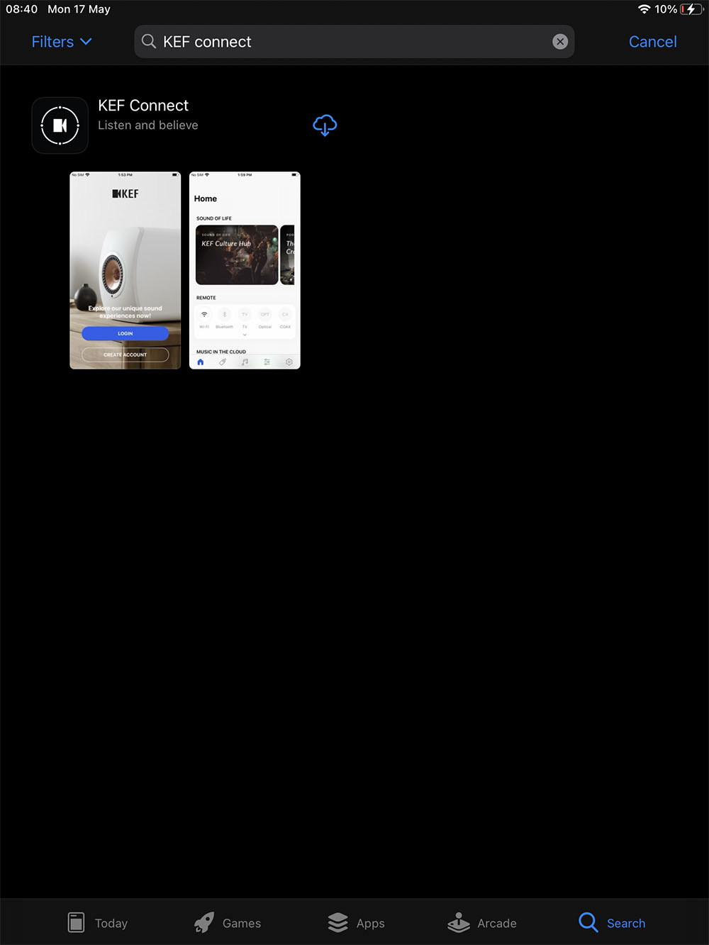หน้าตาของแอพฯ KEF Connect โหลดฟรีได้จาก App Store และ Google Play