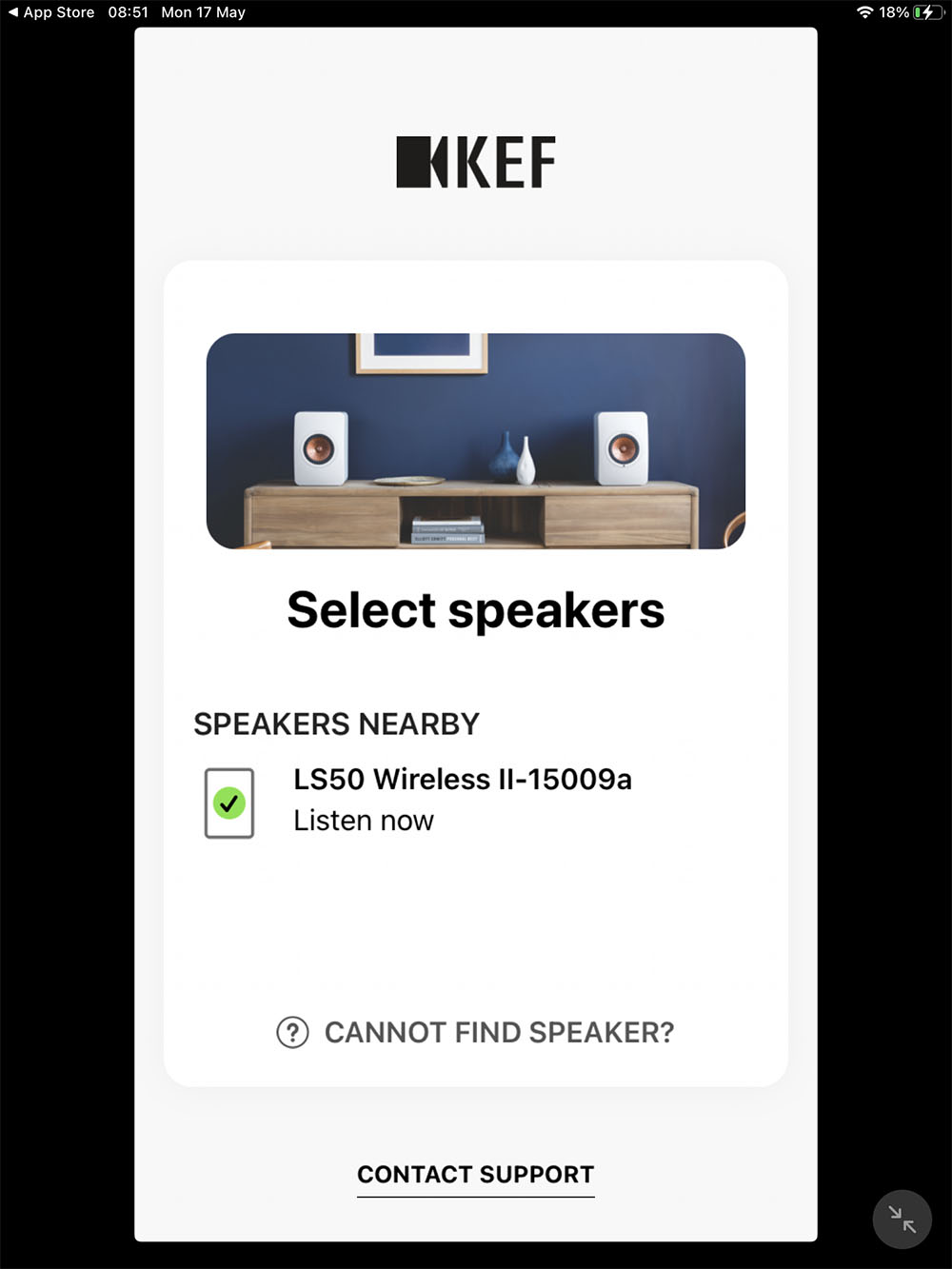 หลังจากดาวน์โหลดแอพ KEF Connect ลงมาบนอุปกรณ์พกพาของคุณแล้ว ก่อนจะใช้งานแอพฯ นี้ได้ คุณจะถูกร้องขอให้ทำการ Log in ก่อน คุณก็ต้องลงทะเบียนโดยกดปุ่ม “Create Account” แล้วกรอกอีเมลกับกำหนดพาสเวิร์คของคุณขึ้นมา เมื่อเข้าได้แล้ว ขั้นตอนต่อไปคือการเชื่อมต่อระหว่างแอ๊พ KEF Connect บนอุปกรณ์พกพาของคุณกับตัวลำโพง LS50 Wireless II ของคุณโดยผ่านทางเน็ทเวิร์คที่บ้านคุณใช้อยู่ กรณีที่ง่ายที่สุดคือปรับตั้งวิธีการเชื่อมต่ออุปกรณ์ผ่าน router ไว้ที่ DHCP คืออนุญาตให้ router จัดการเชื่อมต่อกับอุปกรณ์อื่นๆ โดยอัตโนมัติ ซึ่งหลังจากขั้นตอนนี้จะใช้เวลาแค่ไม่กี่วินาที แอพฯ KEF Connect จะตรวจพบ LS50 Wireless II ที่เชื่อมต่ออยู่ในเน็ทเวิร์คเดียวกันขึ้นมาให้คุณเลือกเพื่อใช้ฟัง (ถ้าคุณมีอุปกรณ์ของ KEF ตัวอื่นๆ ที่เชื่อมต่ออยู่ในเน็ทเวิร์คเดียวกัน รายชื่ออุปกรณ์เหล่านั้นจะปรากฏขึ้นมาด้วย) เมื่อต้องการฟังเพลงผ่าน LS50 Wireless II ก็คลิ๊กเลือกลงไปเลย