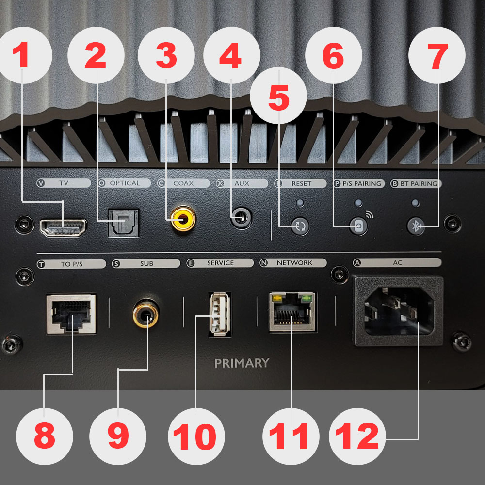 ขั้นตอนแรกของการเชื่อมต่อหลังจากยกลำโพงทั้งสองข้างออกมาจากกล่อง ก็คือเชื่อมต่อสายไฟเอซีเข้าที่ช่องเสียบปลั๊กไฟเอซีของลำโพงทั้งสองข้าง จากนั้นก็กดปุ่มเปิดที่อยู่ด้านบนตัวตู้ของลำโพงข้างขวา (ศรชี้) จากนั้น ก็ทำการเชื่อมโยงลำโพงทั้งสองแชนเนลเข้าด้วยกัน ซึ่งทำได้ 2 แบบ แบบแรกคือต่อแบบไร้สาย ด้วยการกดปุ่ม “P/S Pairing” ที่อยู่บนแผงด้านหลังของตัวลำโพง กับต่อแบบใช้สาย LAN ที่แถมมาในกล่องเสียบเข้าที่ช่อง LAN ที่เขียนว่า “TO P/S” ที่อยู่บนแผงด้านหลังของตัวลำโพงซ้ายและขวา ซึ่งหลังจากเสียบสาย LAN แล้ว ลำโพงทั้งสองตัวจะใช้เวลาไม่กี่อึดใจในการเชื่อมต่อกัน