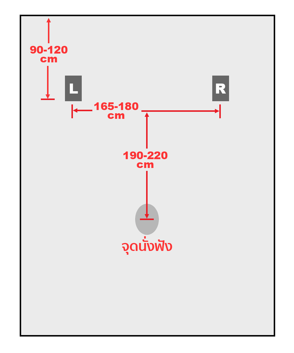2. “Distance from the wall” (ระยะห่างจากผนังหลัง) = มีสเกลให้เลือนเพื่อกำหนดระยะคร่าวๆ ระหว่าง <10 ซ.ม. (น้อยกว่า 10 ซ.ม.) ไปจนถึง >50 ซ.ม. (มากกว่า 50 ซ.ม.) ให้วัดระยะห่างของลำโพงกับผนังด้านหลังแล้วเลื่อนสไลด์ไปไว้ในตำแหน่งประมาณนั้น